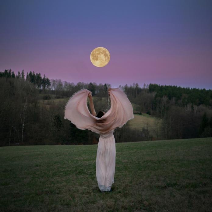 Postavte se ven nebo k oknu a zahleďte se do tlumeného světla Měsíce v úplňku. Pokud jej nevidíte, nebo nemůžete ven, můžete si jeho zářící kotouč představit.