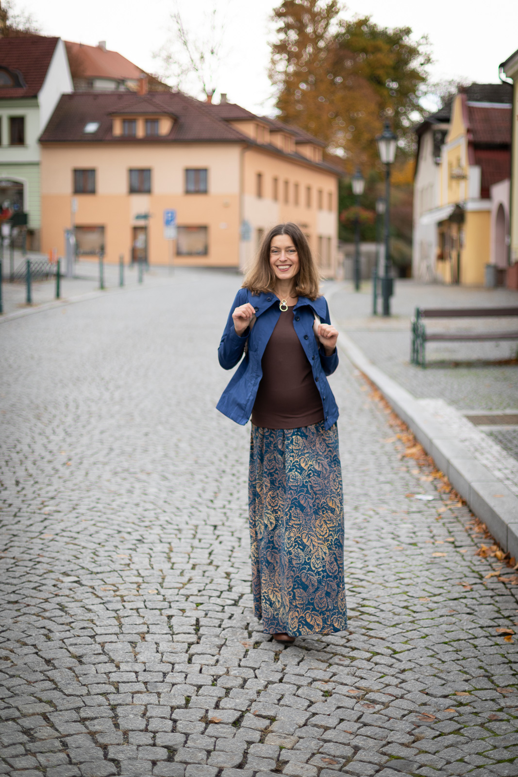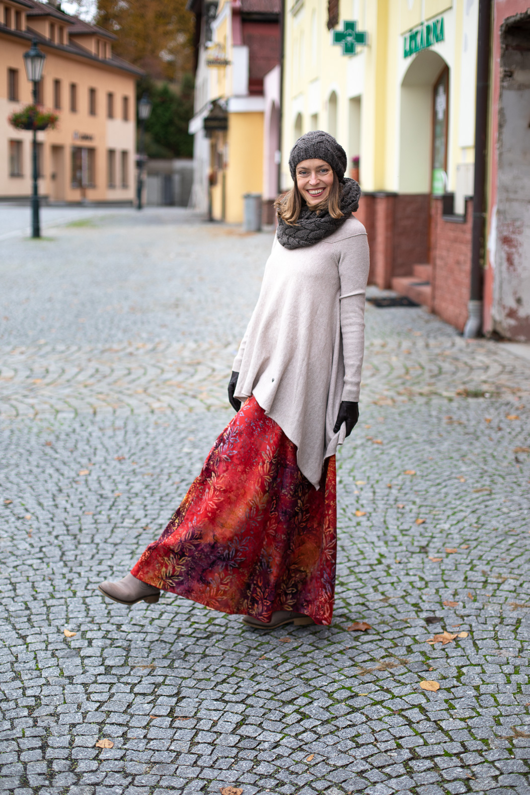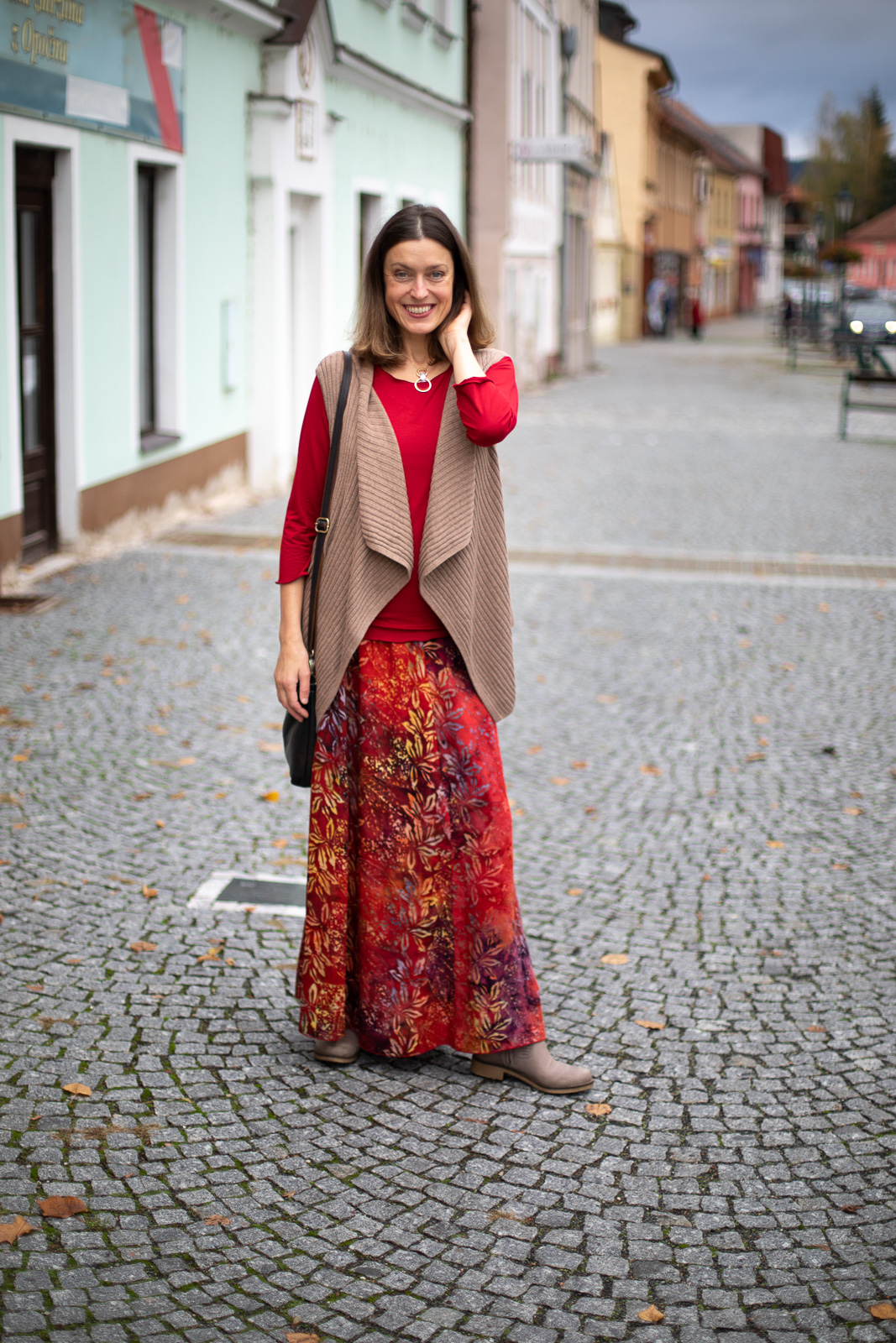 Dlouhá sukně Maya v podzimních barvách mi okamžitě padne do oka. Obléknu si ji a vymýšlím dál, dost možná jako většina z vás, čím svůj podzimní outfit doplním.