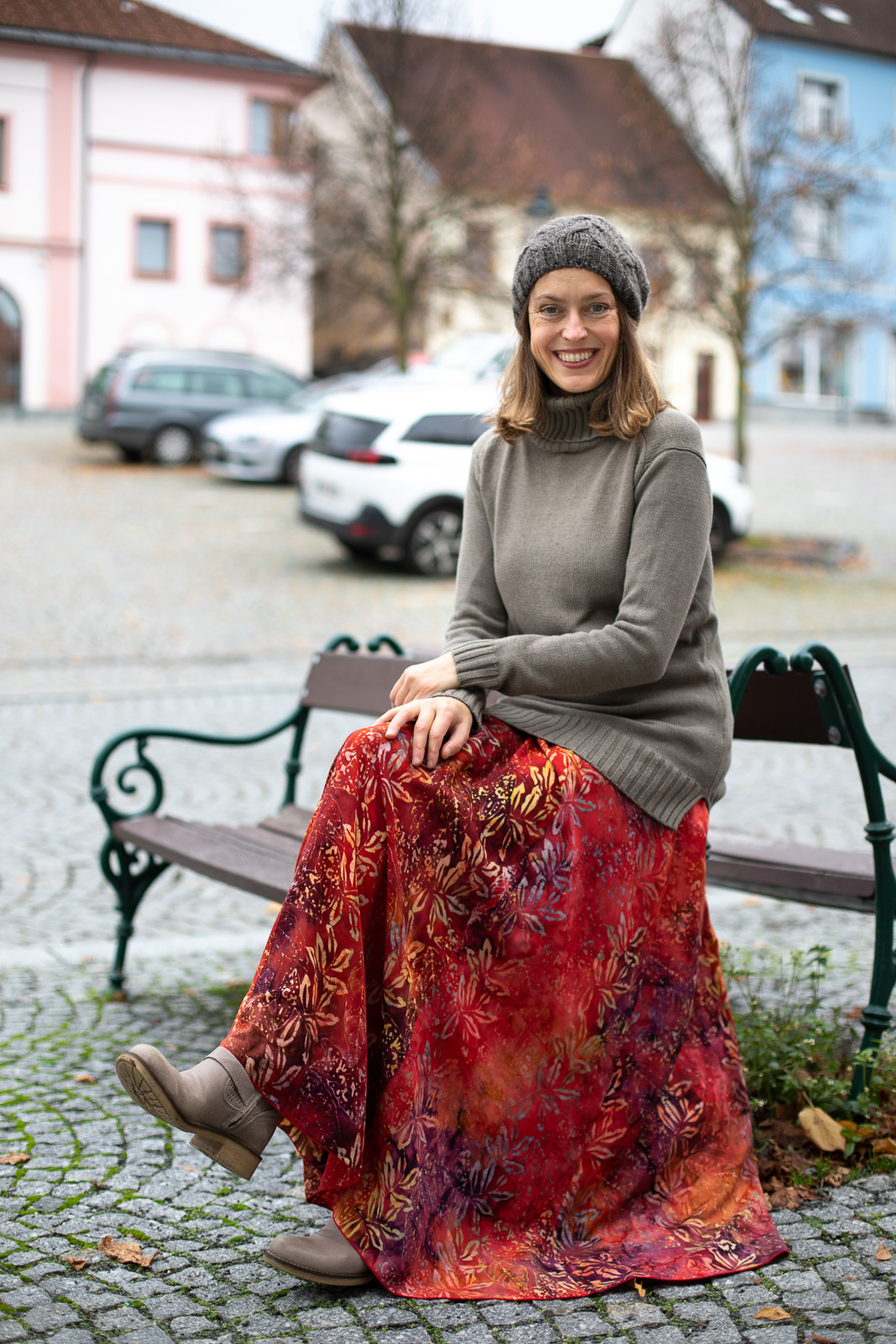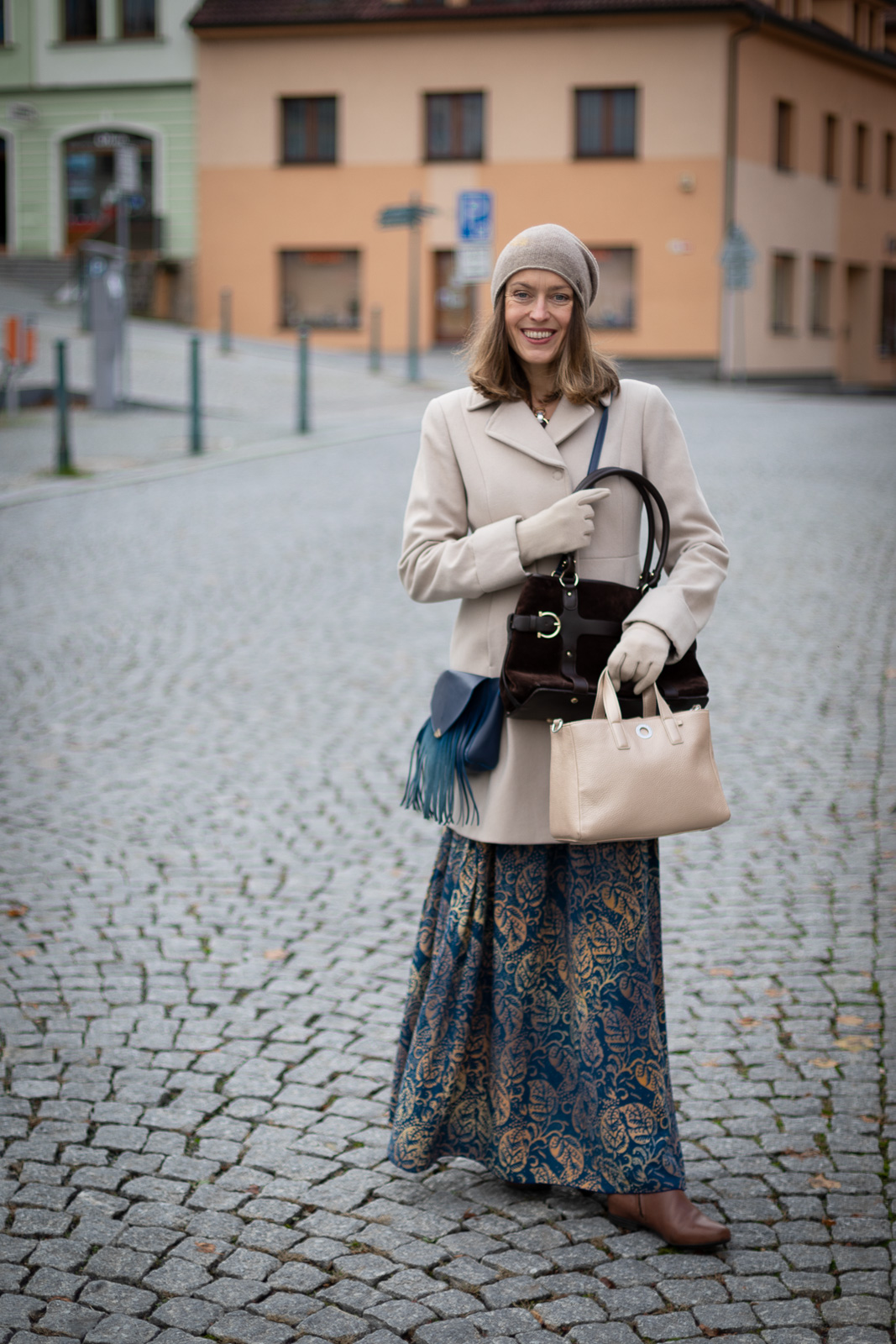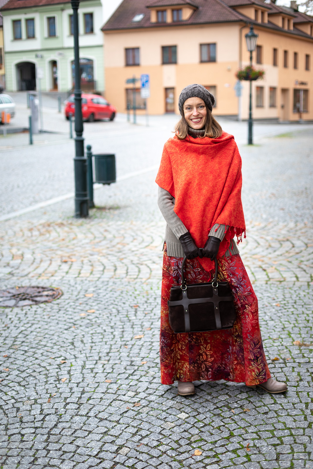 Dlouhá sukně Maya v podzimních barvách mi okamžitě padne do oka. Obléknu si ji a vymýšlím dál, dost možná jako většina z vás, čím svůj podzimní outfit doplním.