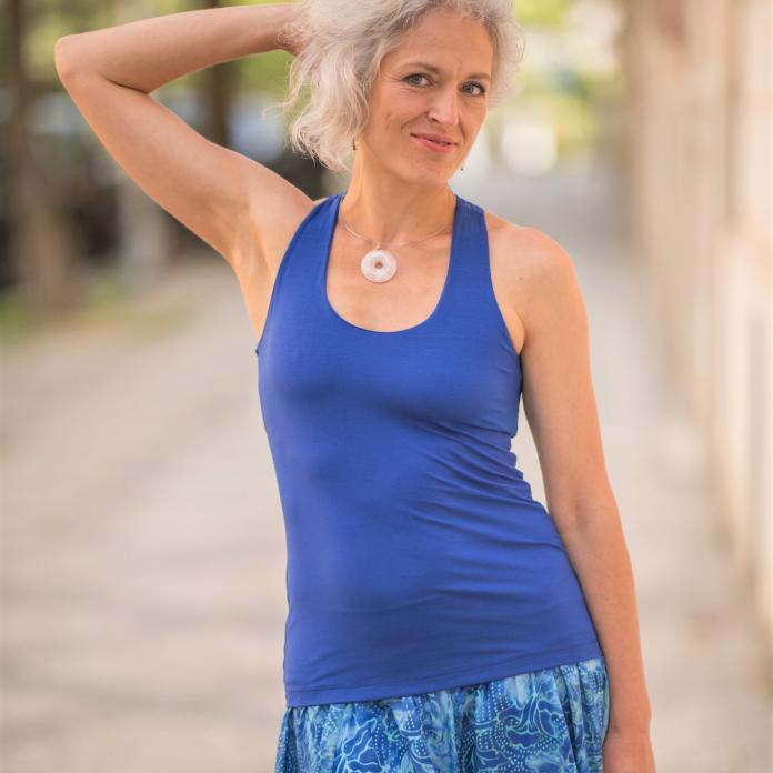 Prvním PACHAMAMA kouskem v mé skříni byla dlouhá sukně. Naprosto jsem se zamilovala do těch kouzelných barev a toho jak při chůzi krásně vlaje kolem těla. Pak přibylo pár krátkých sukýnek, které jsou krásné a zároveň praktické na běhání po městě i výlety asi kamkoliv. Letos v létě jsem si hodně oblíbila fialové tílko s všitou braletkou. Doslova mi zachránilo kůži při odjezdu z dovolené. Poslední den u moře jsem si spálila záda. Tohle tílko bylo jediné oblečení, které jsem mohla na podrážděnou kůži na zpáteční několika hodinovou cestu autem obléknout. Během cesty nikde nedřelo ani neškrábalo. A teď nenápadně pokukuji, jakou další krásnost si pořídím ;)