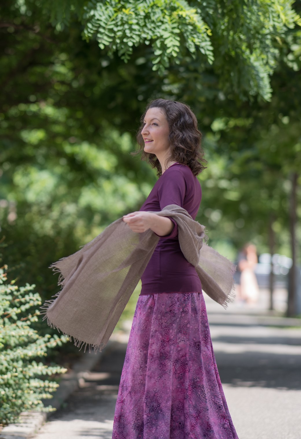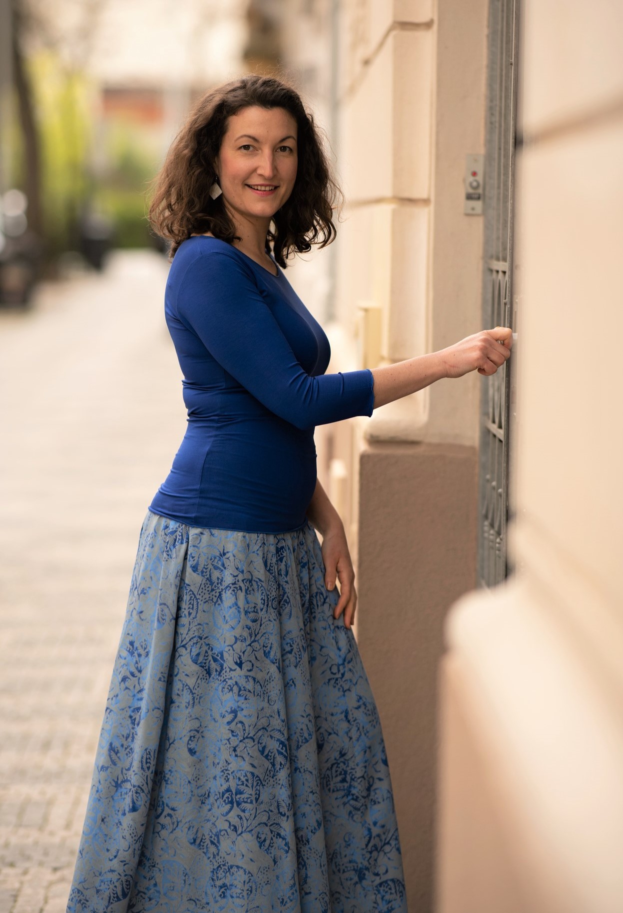 Nemám žádný vyhraněný styl oblečení. Takže dokážu nosit sako, podpatky, ale taky legíny a holínky. Volím si vždy to, co se mi líbí a v čem se cítím dobře. S dlouhými sukněmi jsem do té doby, než jsem potkala PACHAMAMA a zároveň nebyla po operaci, neměla zkušenost. Tehdy to byl jediný kousek oblečení, který jsem mohla na oblast bříška, kde jsem měla stehy, dát. A poprvé jsem pocítila, jak jsou dlouhé sukně fajn. Cítila jsem se v ní hodně žensky a ukotveně. Vnímala jsem úplně jiný pocit, než když si na sebe obléknu krátkou sukni. I přesto, že neobepínala a neukazovala mé dlouhé nohy, přišla jsem si v ní sexy. A tak jako schovaná, v bezpečí. Rafinovaně. A zároveň propojená se zemí. Za mě mají dlouhé sukně magickou moc.