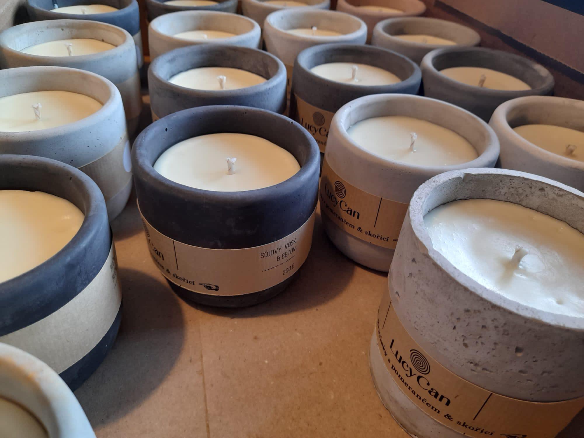 Náročně, trošku jsem si s betonem zavařila. Technologii jsem vyvíjela skoro půl roku. Nakonec jsem skončila u klasického míchání cementu s pískem. Dózy se musí máčet a několik dnů nechat vytvrdnout. Velice důležité je použití kvalitní impregnace kvůli poréznosti povrchu betonu. A pak je to o poměrech, vážení, teplotách a zrání vosku. Výroba svíčky v betonové dóze se nedá nijak uspěchat. Trvá skoro dva týdny. A s etiketováním ji musím vzít minimálně 10× do ruky, než je dílo hotové.