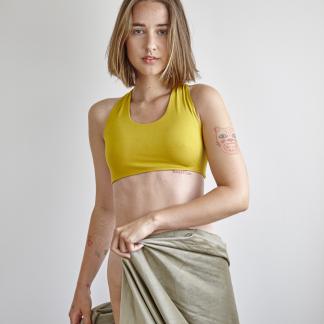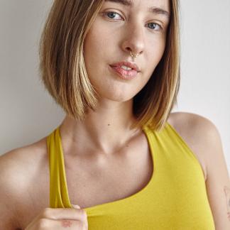 Rafinovaný střih a nádherný materiál vyniknou v rozhaleném topu, pod průsvitnou halenkou nebo v hlubokém výstřihu na zádech, v horkých letních dnech i samostatně se sukní nebo legínami.
