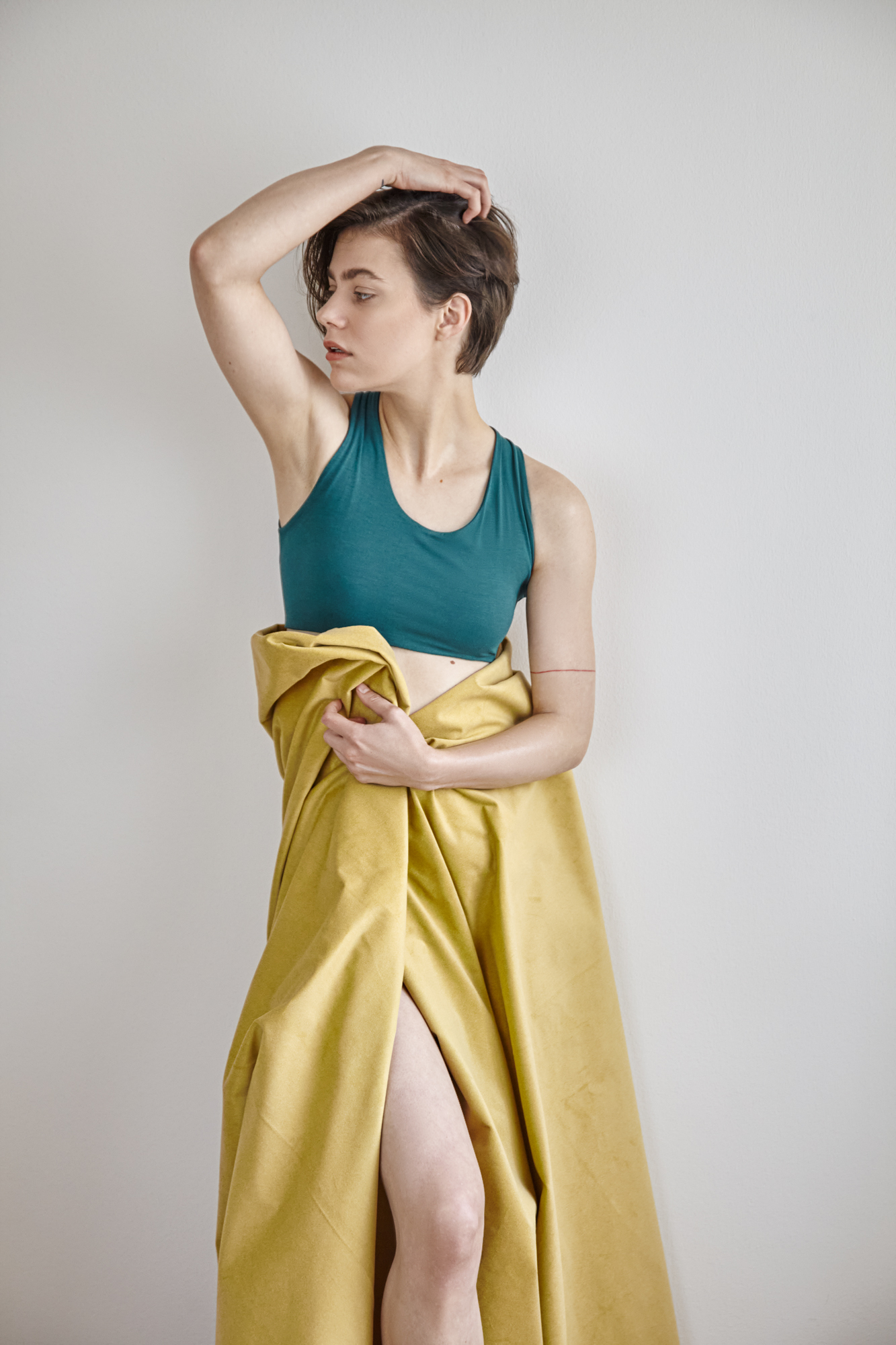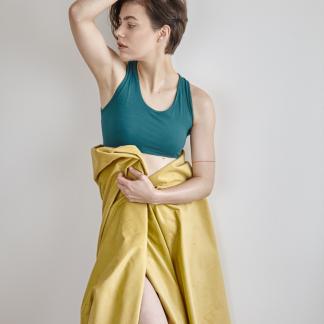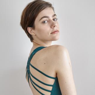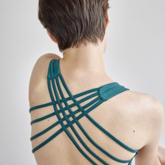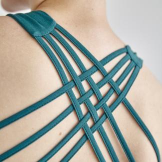 Rafinovaný střih a nádherný materiál vyniknou v rozhaleném topu, pod průsvitnou halenkou nebo v hlubokém výstřihu na zádech, v horkých letních dnech i samostatně se sukní nebo legínami.