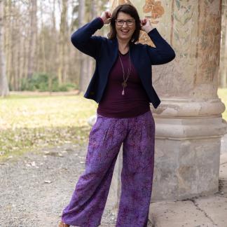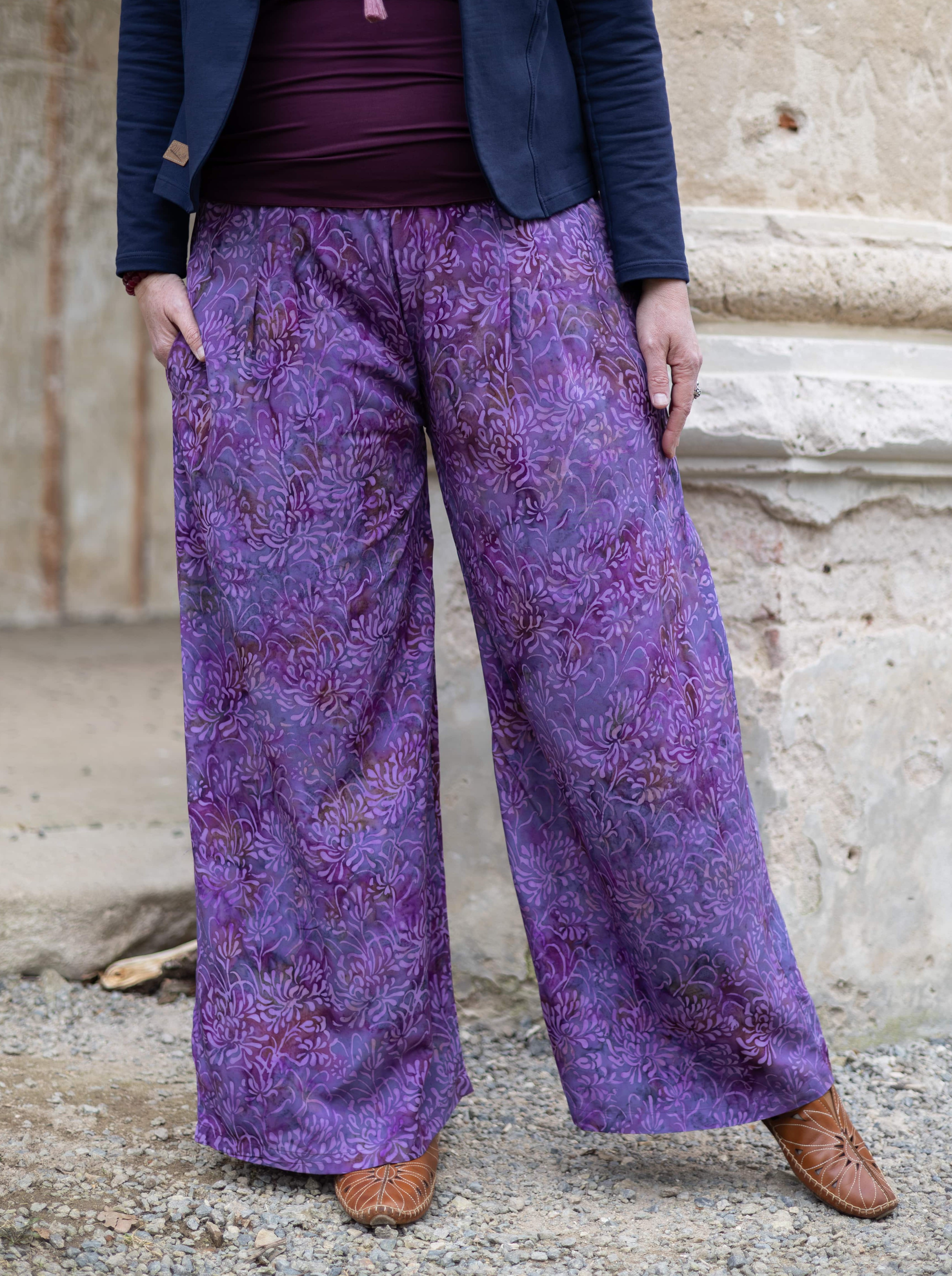 Jsou vyrobeny z lehké, splývavé viskózy a zdobeny jedinečným ručně batikovaným vzorem, který dodává každému kusu originalitu. Široký pružný pas se přizpůsobí vaší postavě a zajišťuje komfort po celý den. Trendy široký střih nohavic nejen skvěle vypadá, ale také poskytuje volnost pohybu.