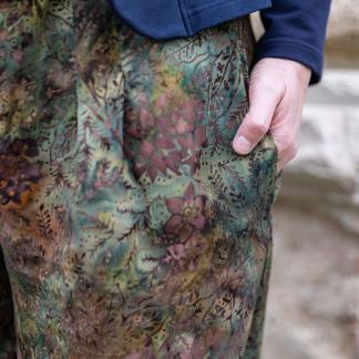 Tyto kalhoty pocházejí ze stejné dílny jako naše oblíbené dlouhé sukně – mistr Aldim se stará o jedinečné barvy a vzory, zatímco v šicí dílně paní Agung na Bali vznikají samotné produkty.