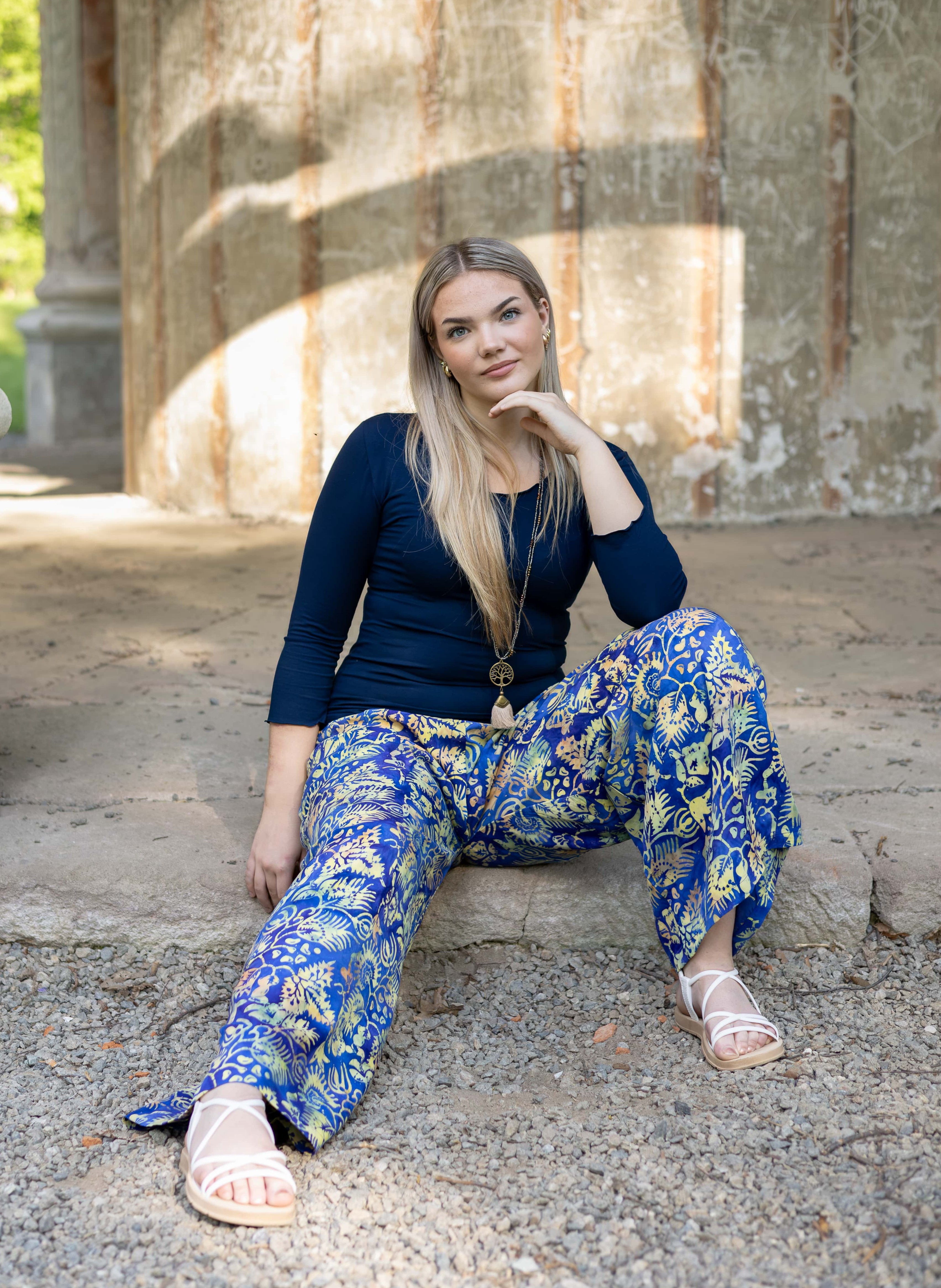 Tyto kalhoty pocházejí ze stejné dílny jako naše oblíbené dlouhé sukně – mistr Aldim se stará o jedinečné barvy a vzory, zatímco v šicí dílně paní Agung na Bali vznikají samotné produkty.