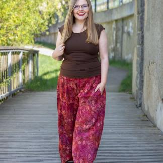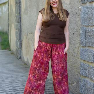 Jsou vyrobeny z lehké, splývavé viskózy a zdobeny jedinečným ručně batikovaným vzorem, který dodává každému kusu originalitu. Široký pružný pas se přizpůsobí vaší postavě a zajišťuje komfort po celý den. Trendy široký střih nohavic nejen skvěle vypadá, ale také poskytuje volnost pohybu.