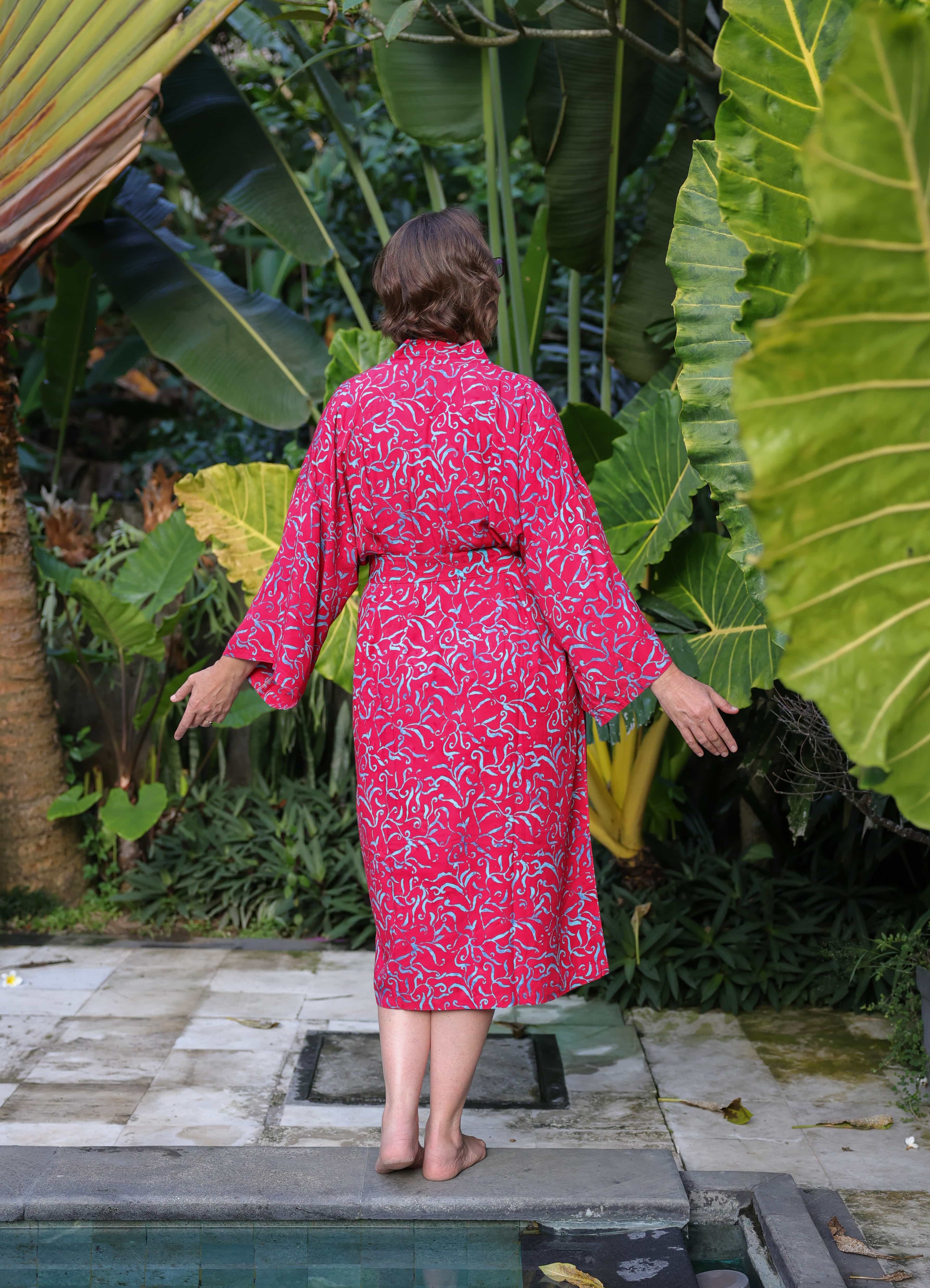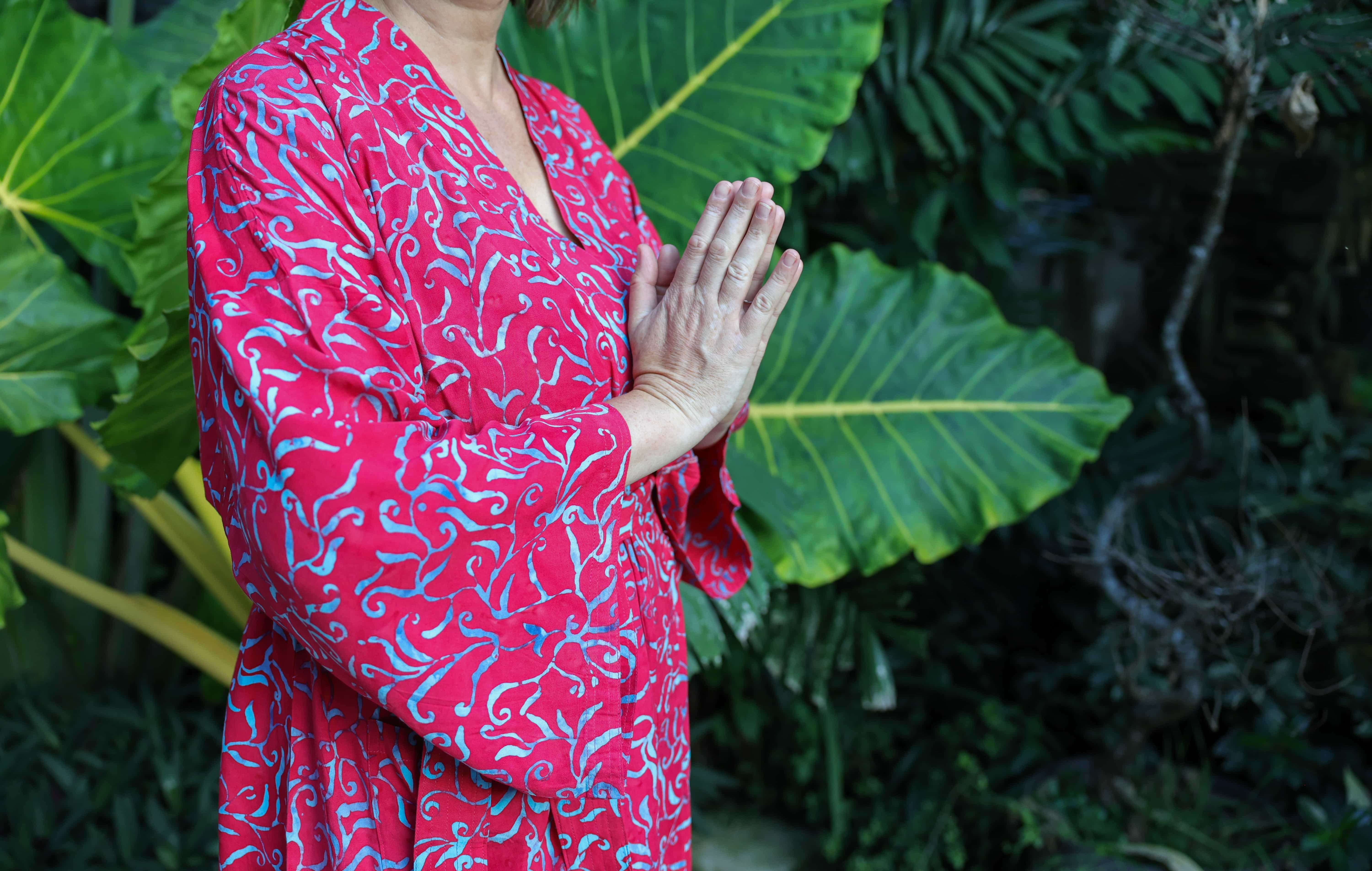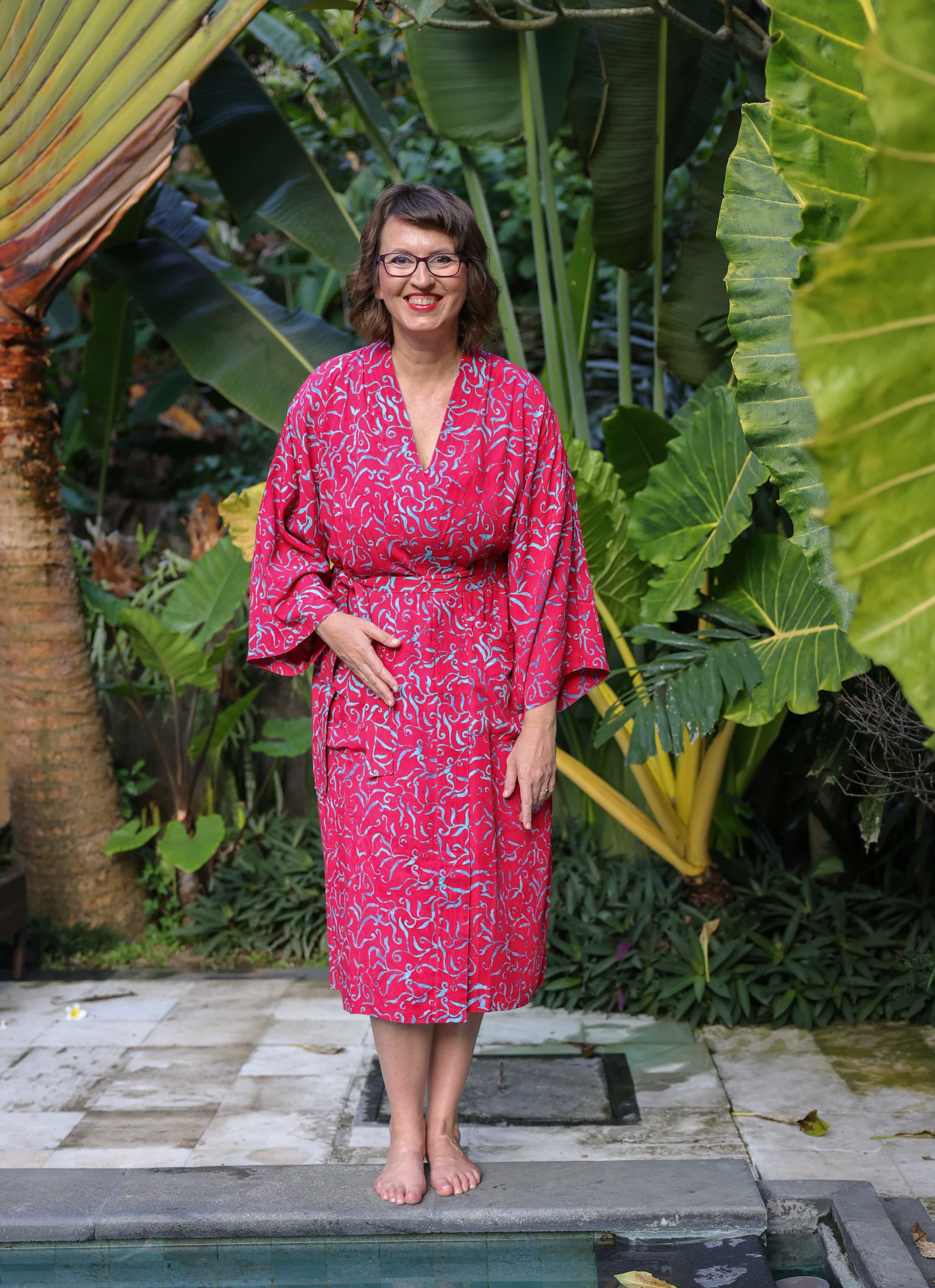 Kimona pro vás ručně ušily a nabatikovali ve spřátelené rodinné dílně paní Nyoman, takže stejný kus na pláži nebo v sauně prostě nepotkáte. Navíc nákupem podporujete konkrétní lidi, kteří za svou práci dostávají férově zaplaceno.