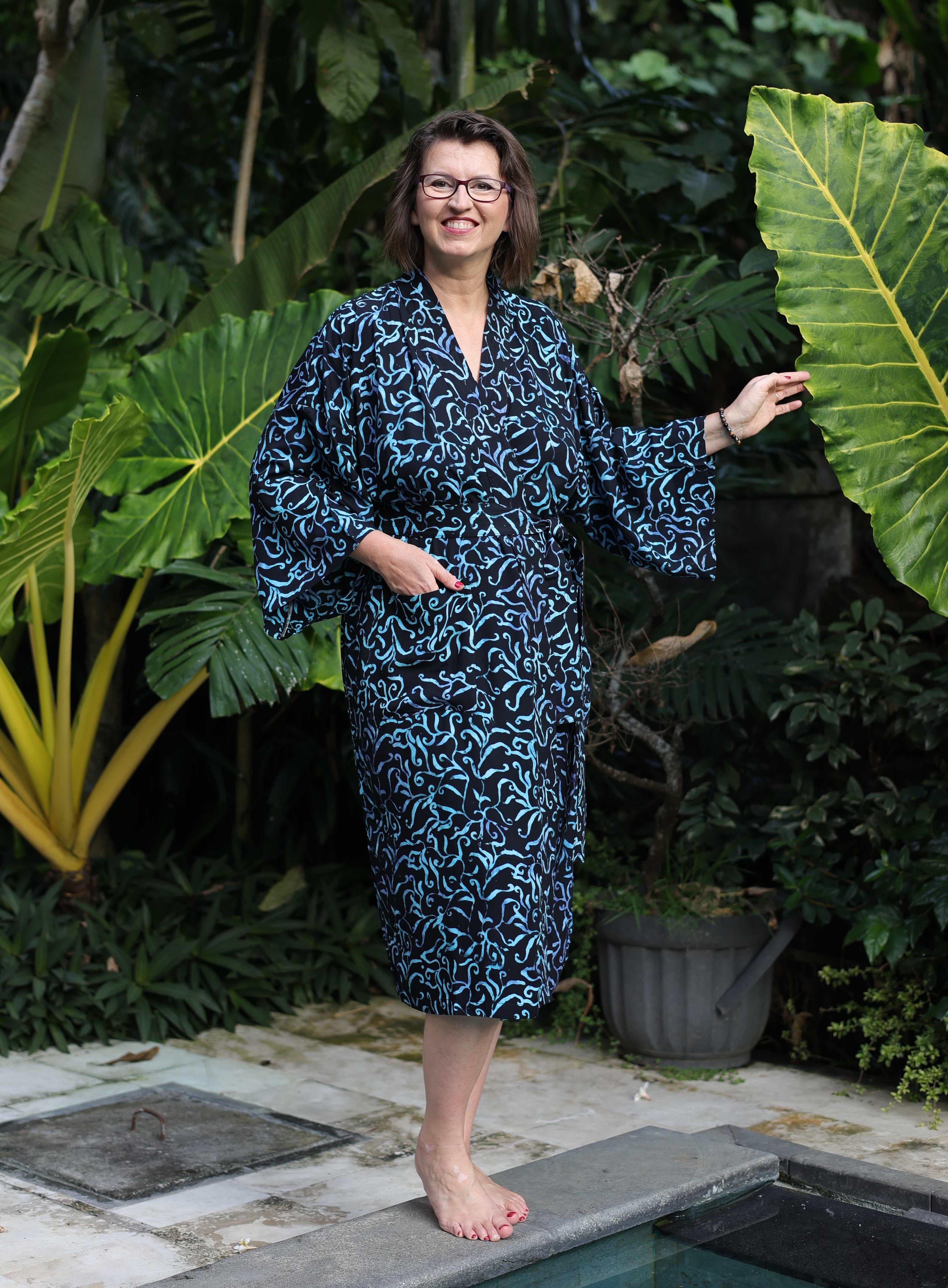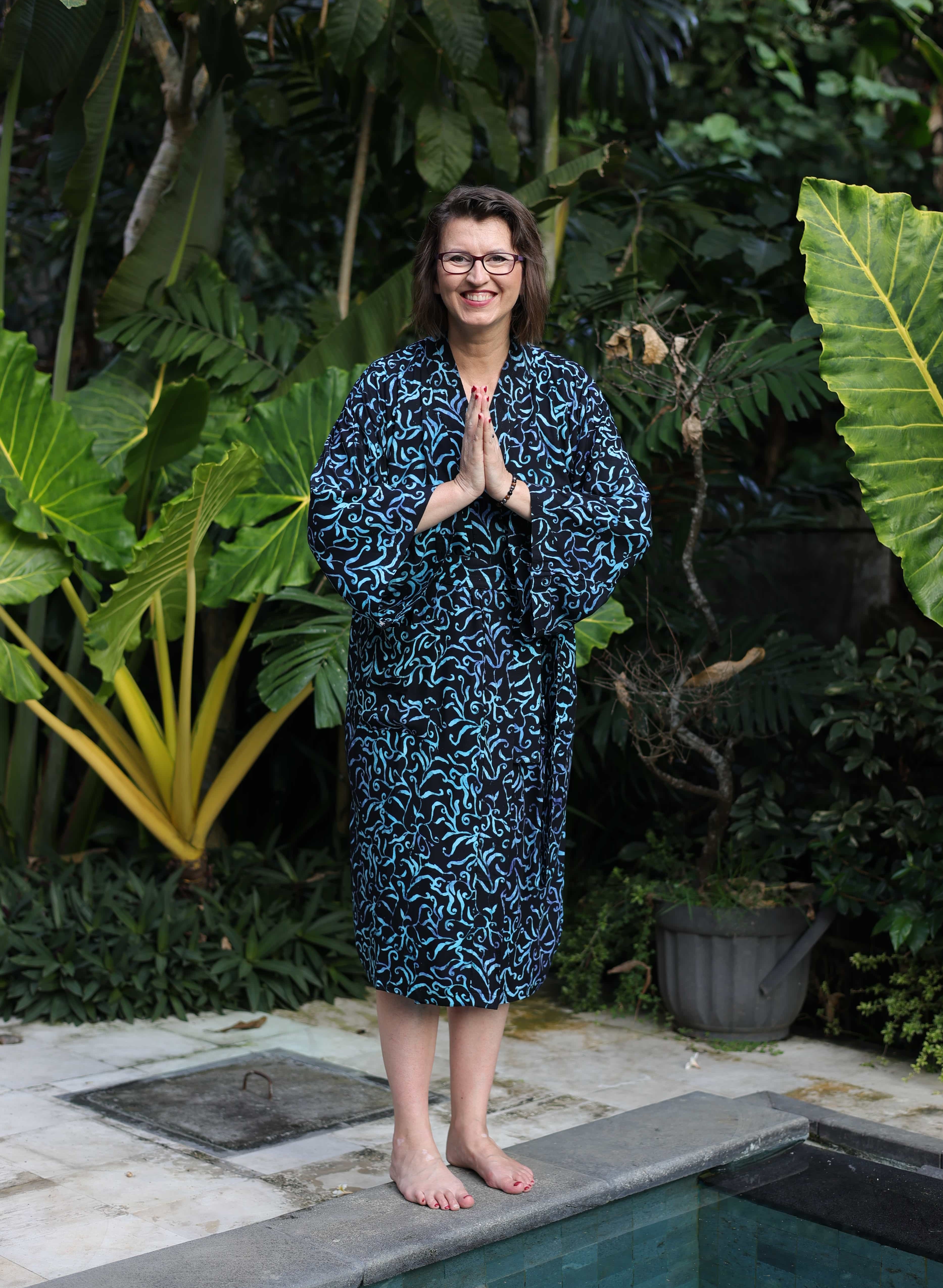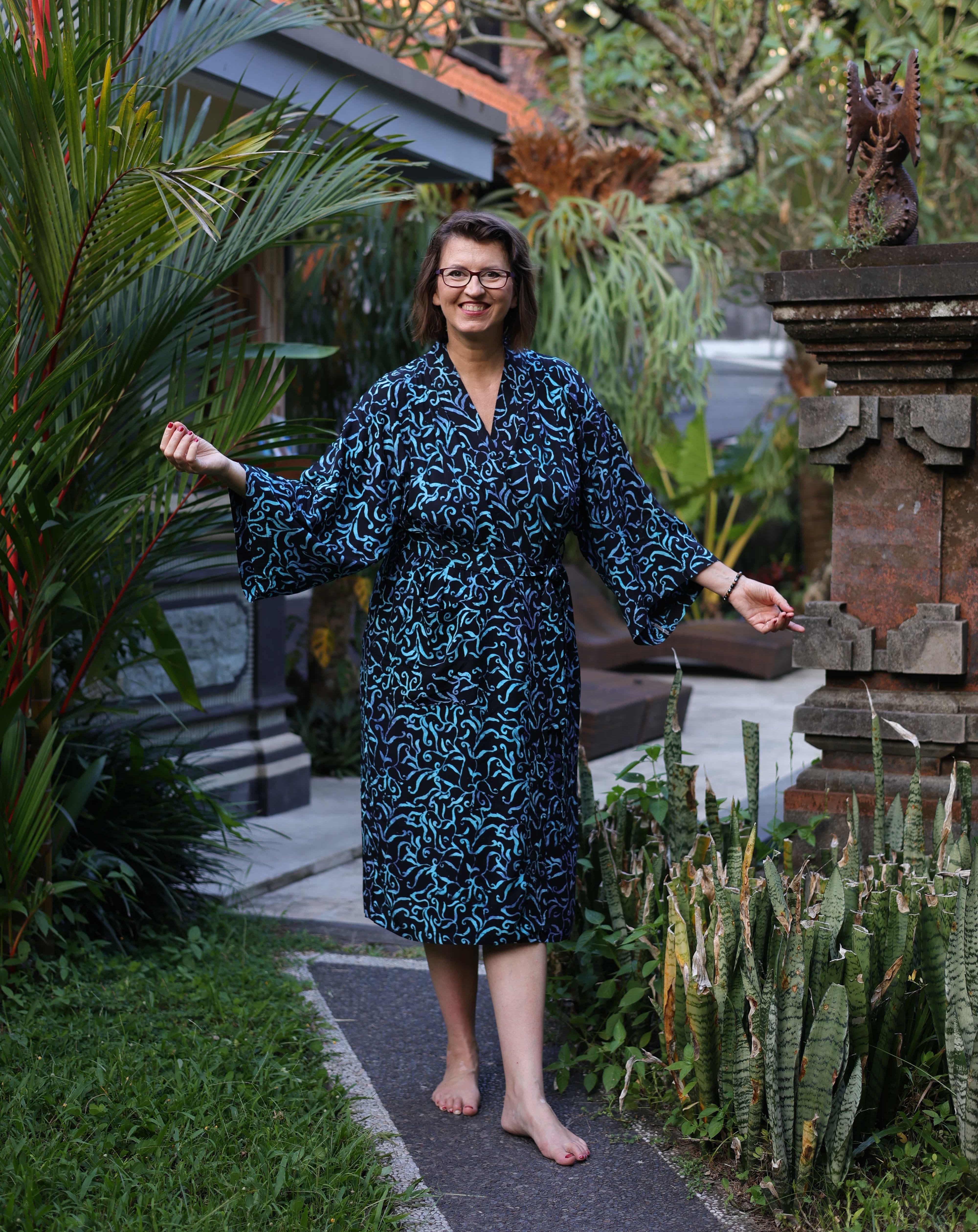 Kimona pro vás ručně ušily a nabatikovali ve spřátelené rodinné dílně paní Nyoman, takže stejný kus na pláži nebo v sauně prostě nepotkáte. Navíc nákupem podporujete konkrétní lidi, kteří za svou práci dostávají férově zaplaceno.