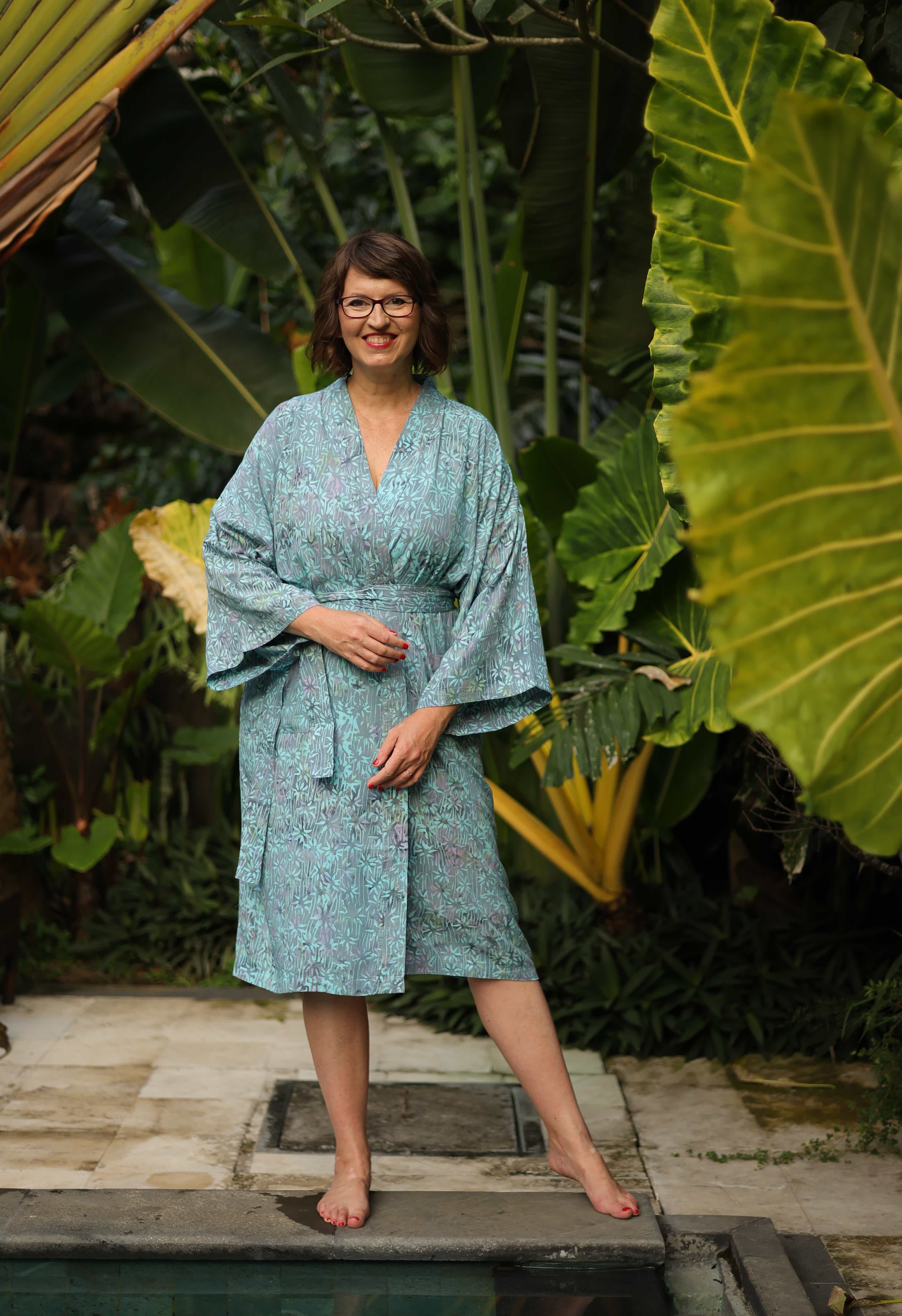 Kimona pro vás ručně ušily a nabatikovali ve spřátelené rodinné dílně paní Nyoman, takže stejný kus na pláži nebo v sauně prostě nepotkáte. Navíc nákupem podporujete konkrétní lidi, kteří za svou práci dostávají férově zaplaceno.