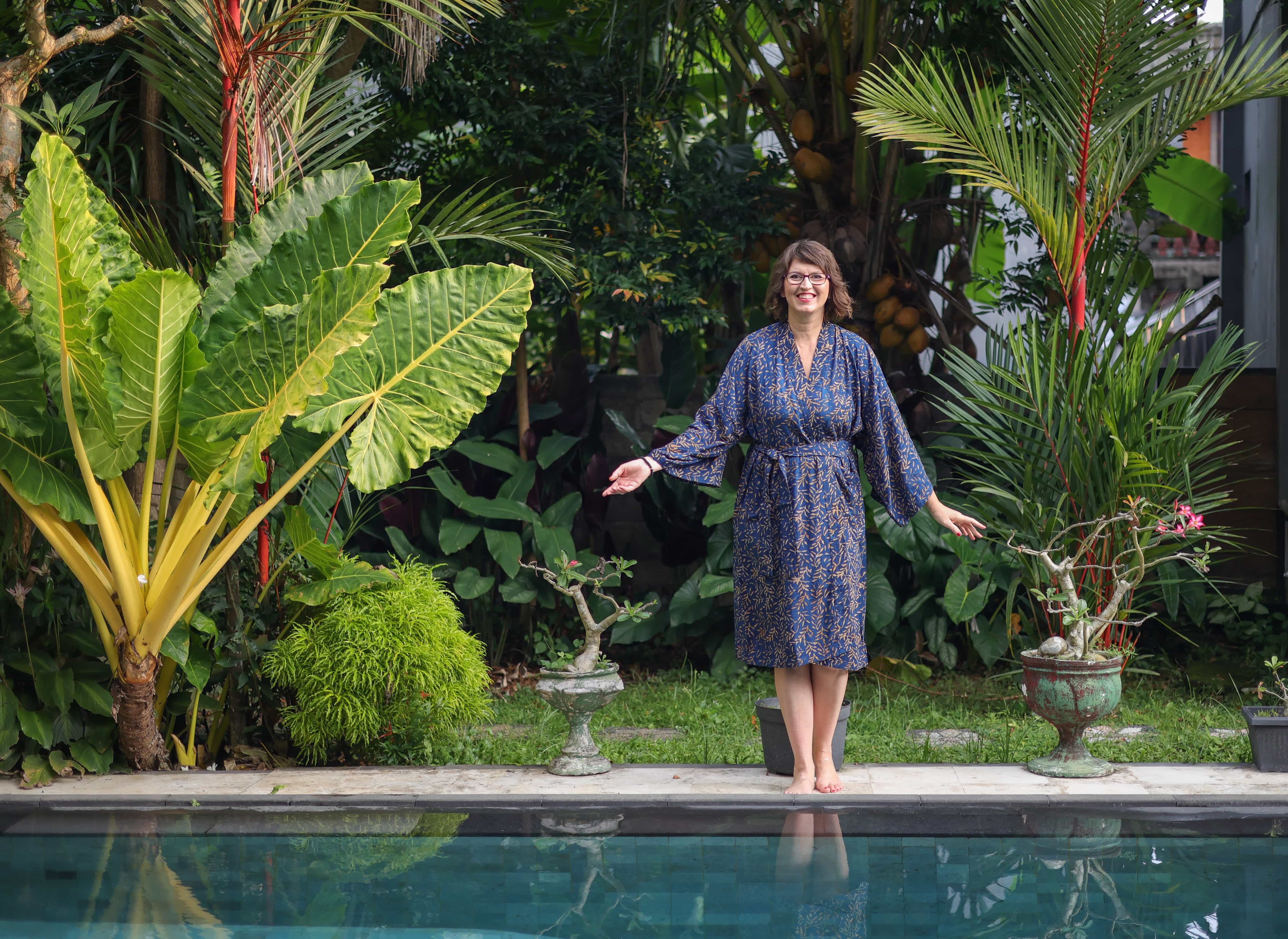 Kimona pro vás ručně ušily a nabatikovali ve spřátelené rodinné dílně paní Nyoman, takže stejný kus na pláži nebo v sauně prostě nepotkáte. Navíc nákupem podporujete konkrétní lidi, kteří za svou práci dostávají férově zaplaceno.