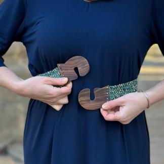 Korálkový opasek s dřevěnou přezkou