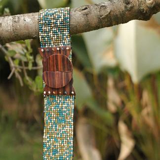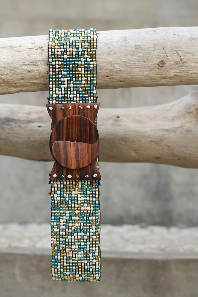 Nechte vyniknout svůj pas a promluvit své ladné křivky. Naše originální, barevné, ručně vyráběné opasky se skleněnými korálky a výraznou dřevěnou přezkou rozvlní vaše boky a umocní vaši ženskost.