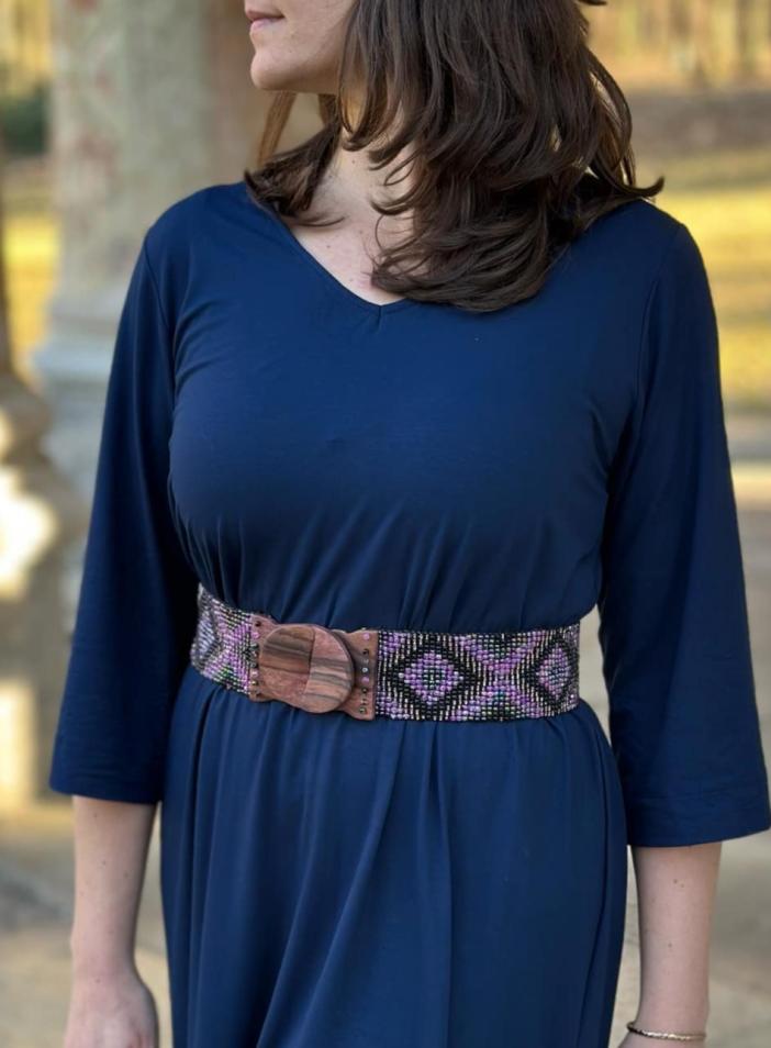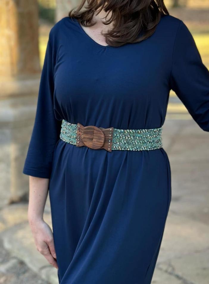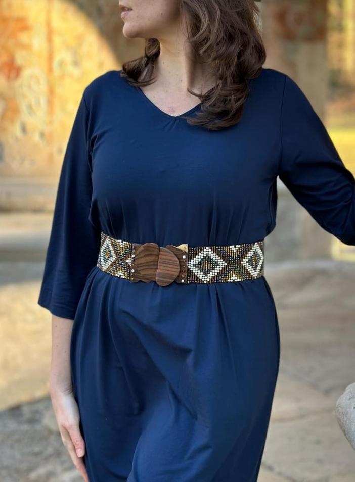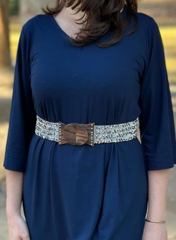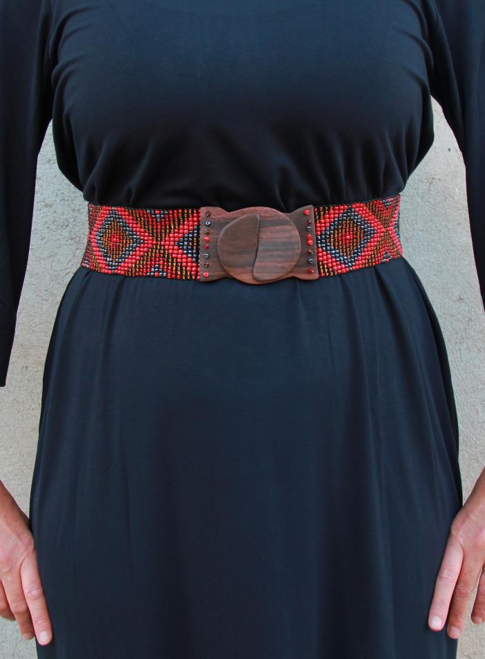 Korálkové opasky s dřevěnou přezkou zvýrazní váš pas a nechají vyniknout křivky. Originální opasky ze skleněných korálků necháváme vyrábět ručně u manželů Budyho a Visky, kteří díky tomu dostávají za svou práci férově zaplaceno.