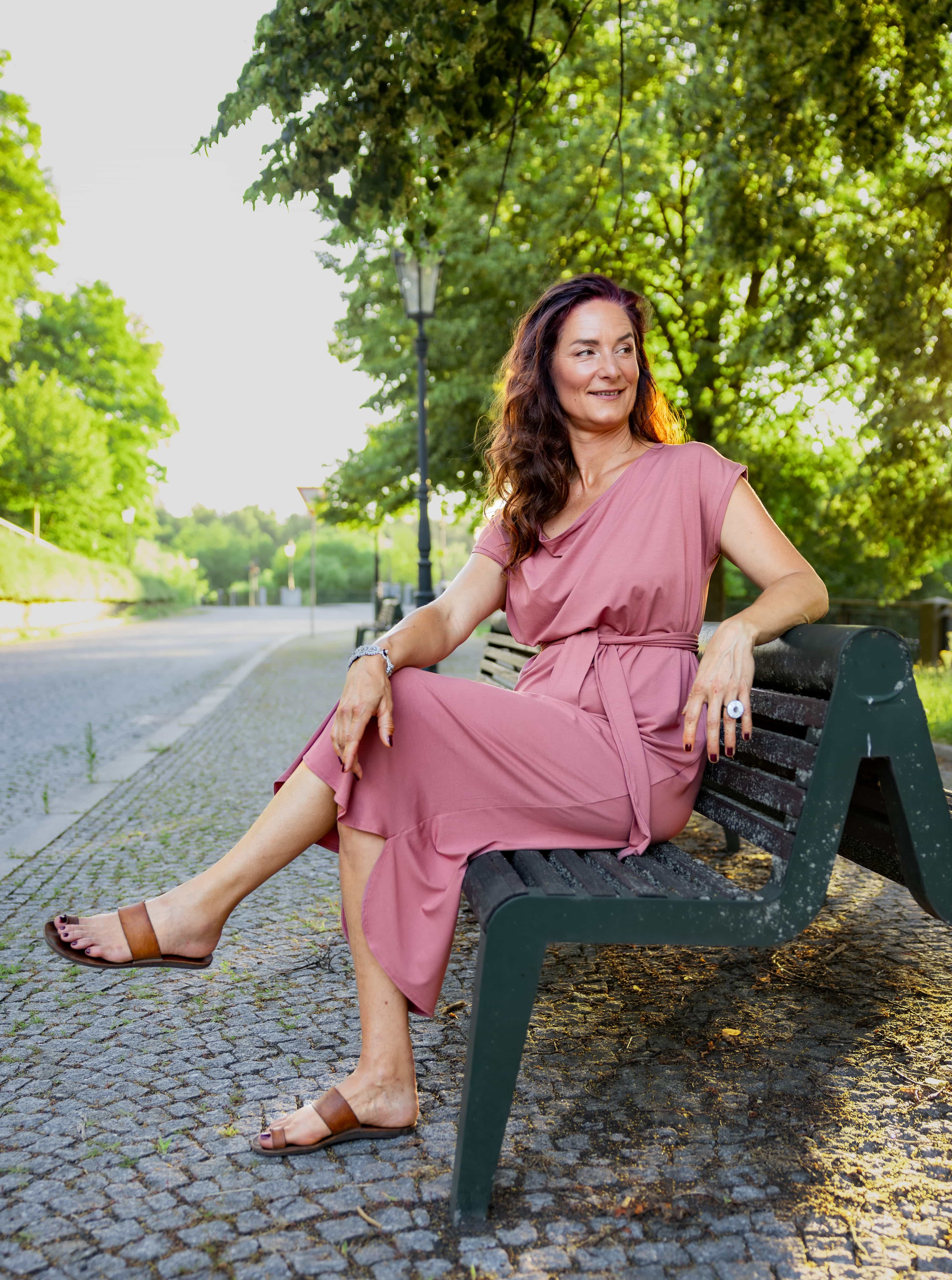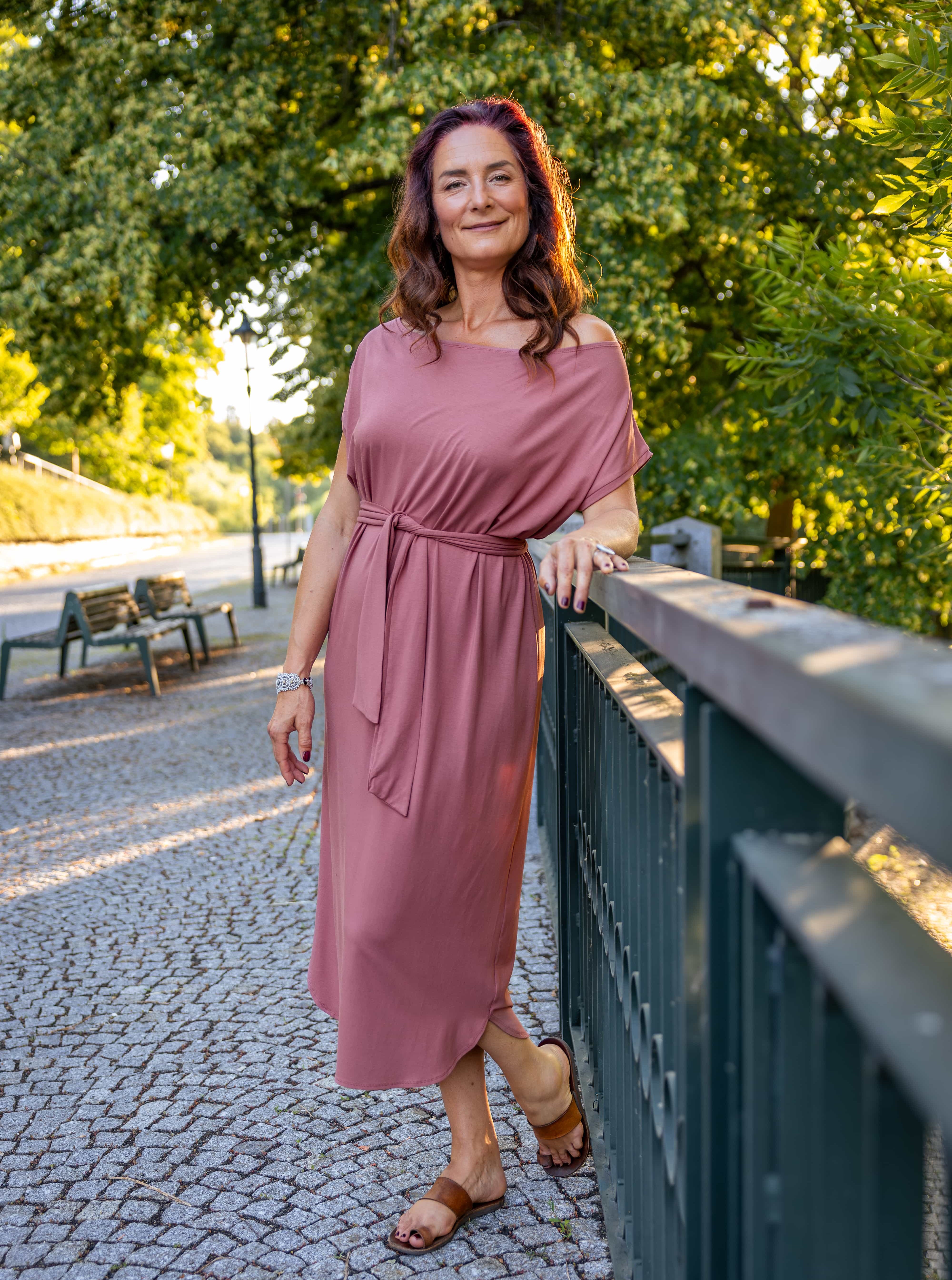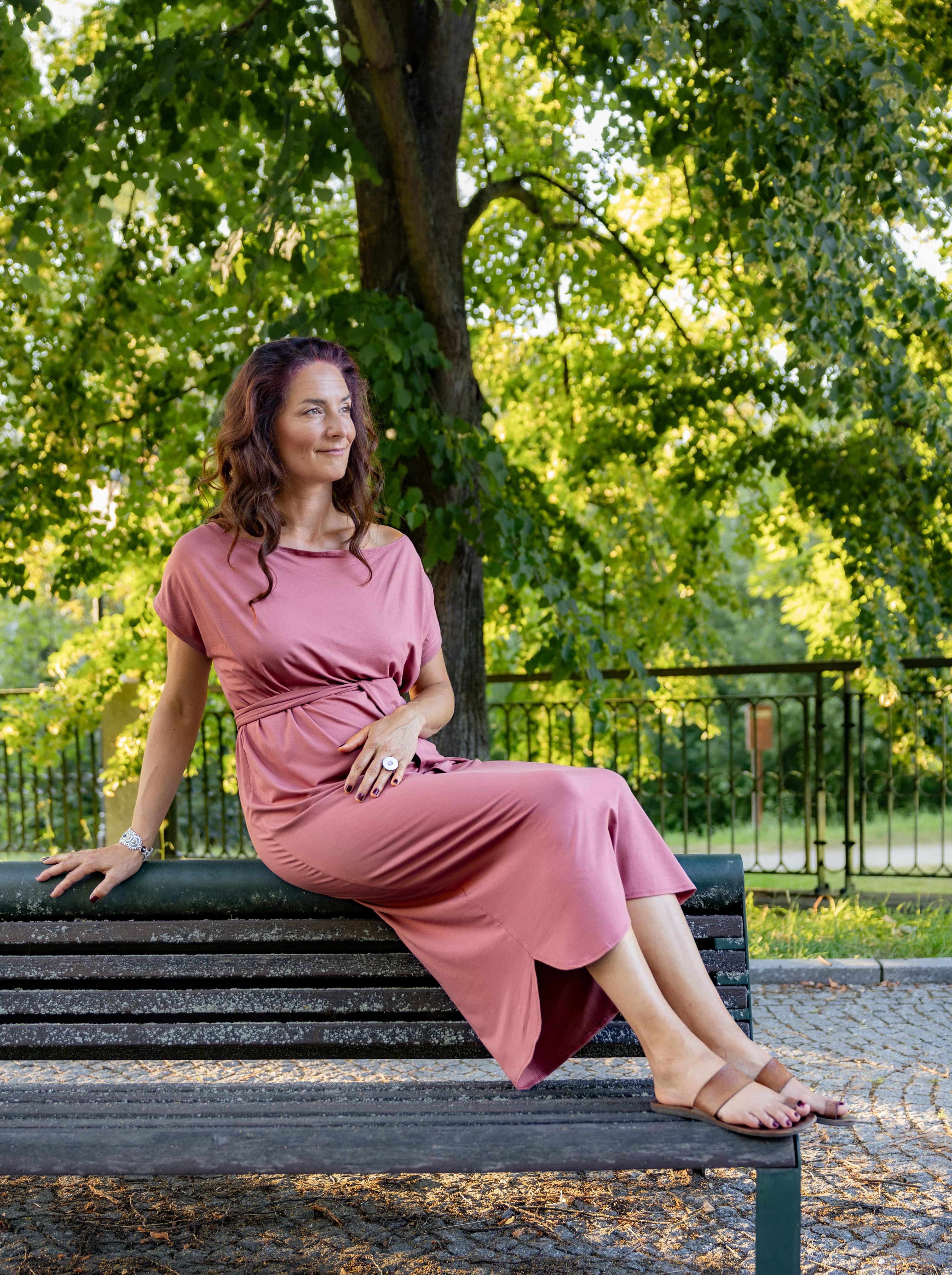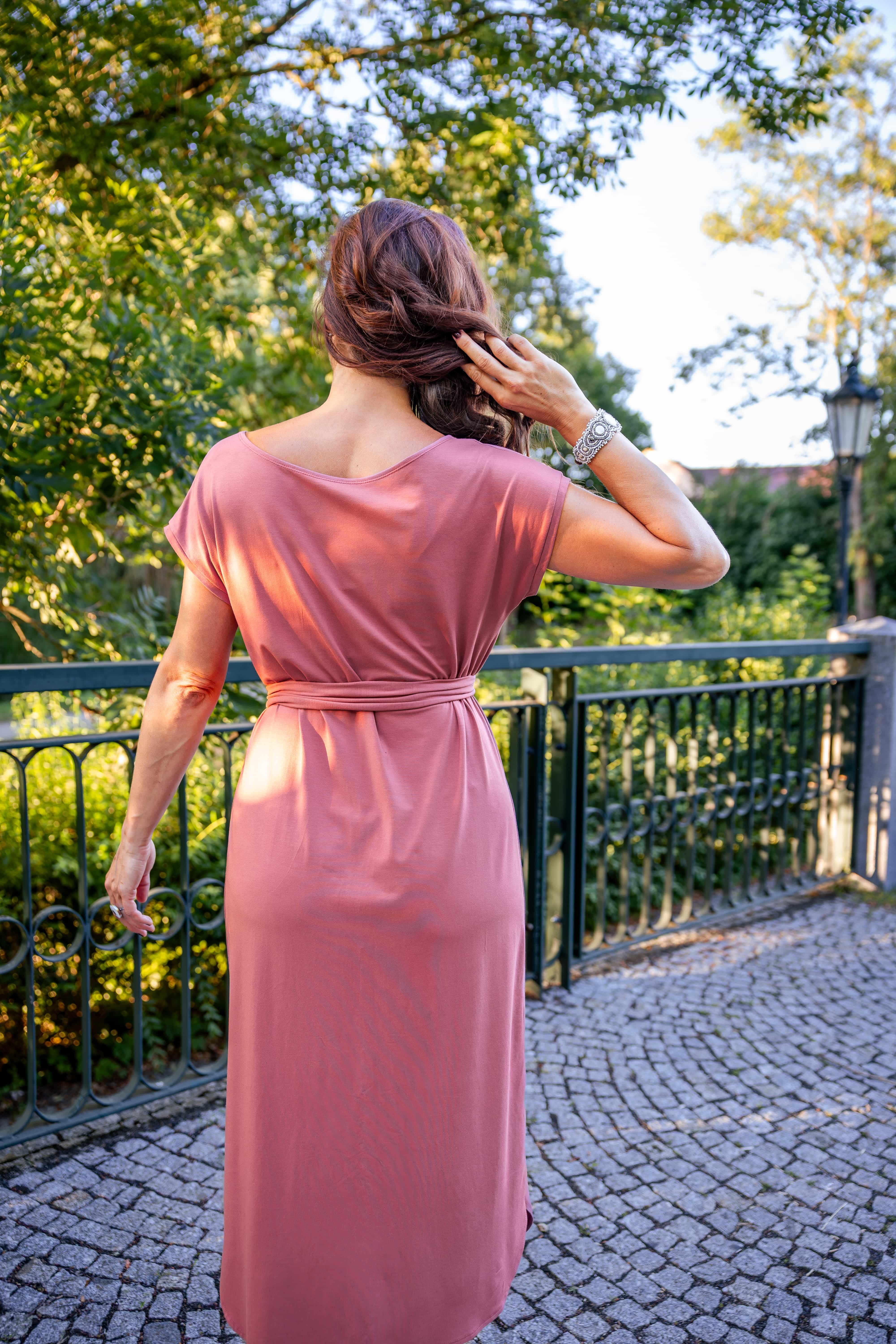 • Siluetu zvýrazníte širším páskem ze stejného materiálu. Díky splývavé a pružné viskóze nikde nevznikne zbytečný objem, látka se krásně přizpůsobí postavě a ukáže jen to, co chcete.