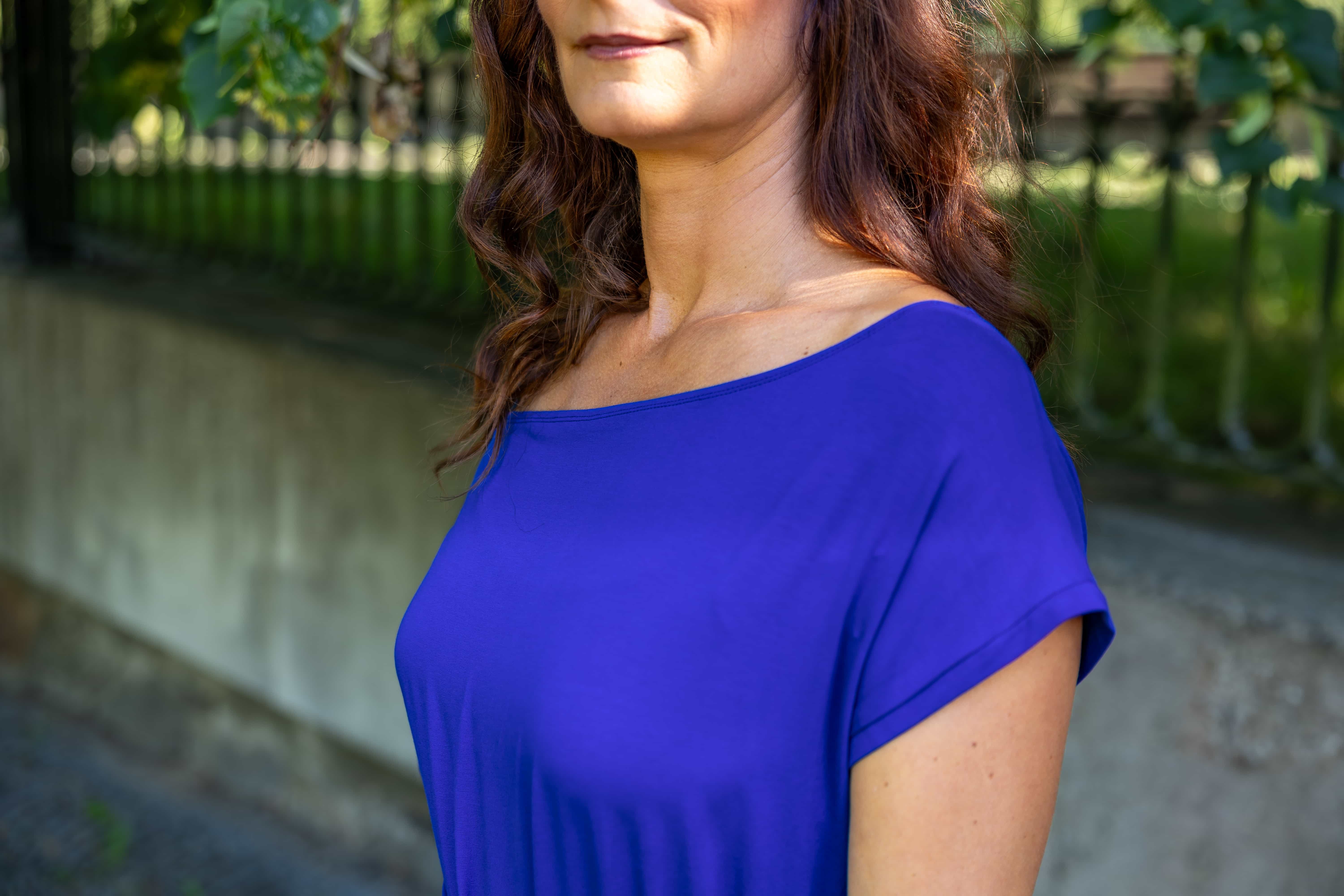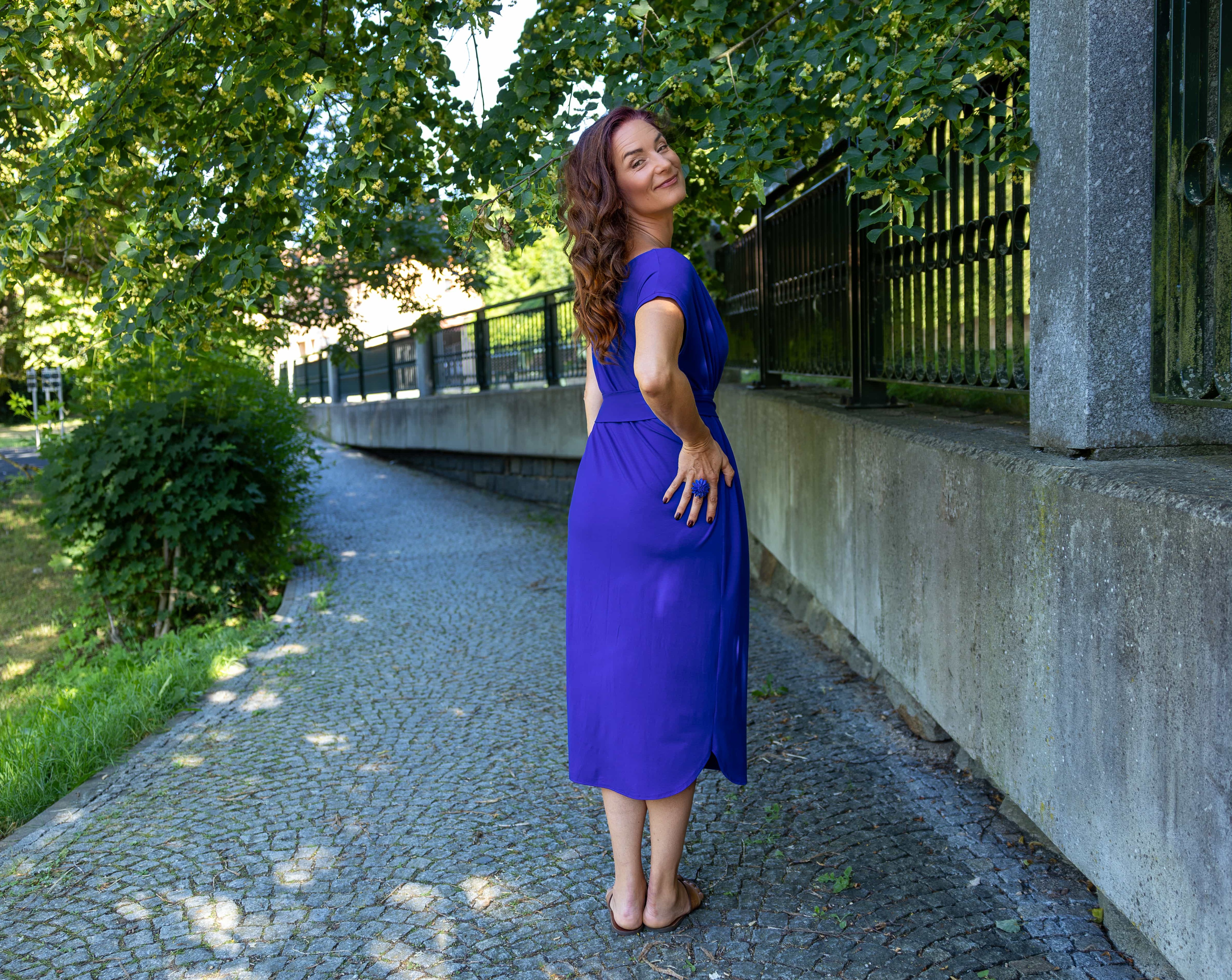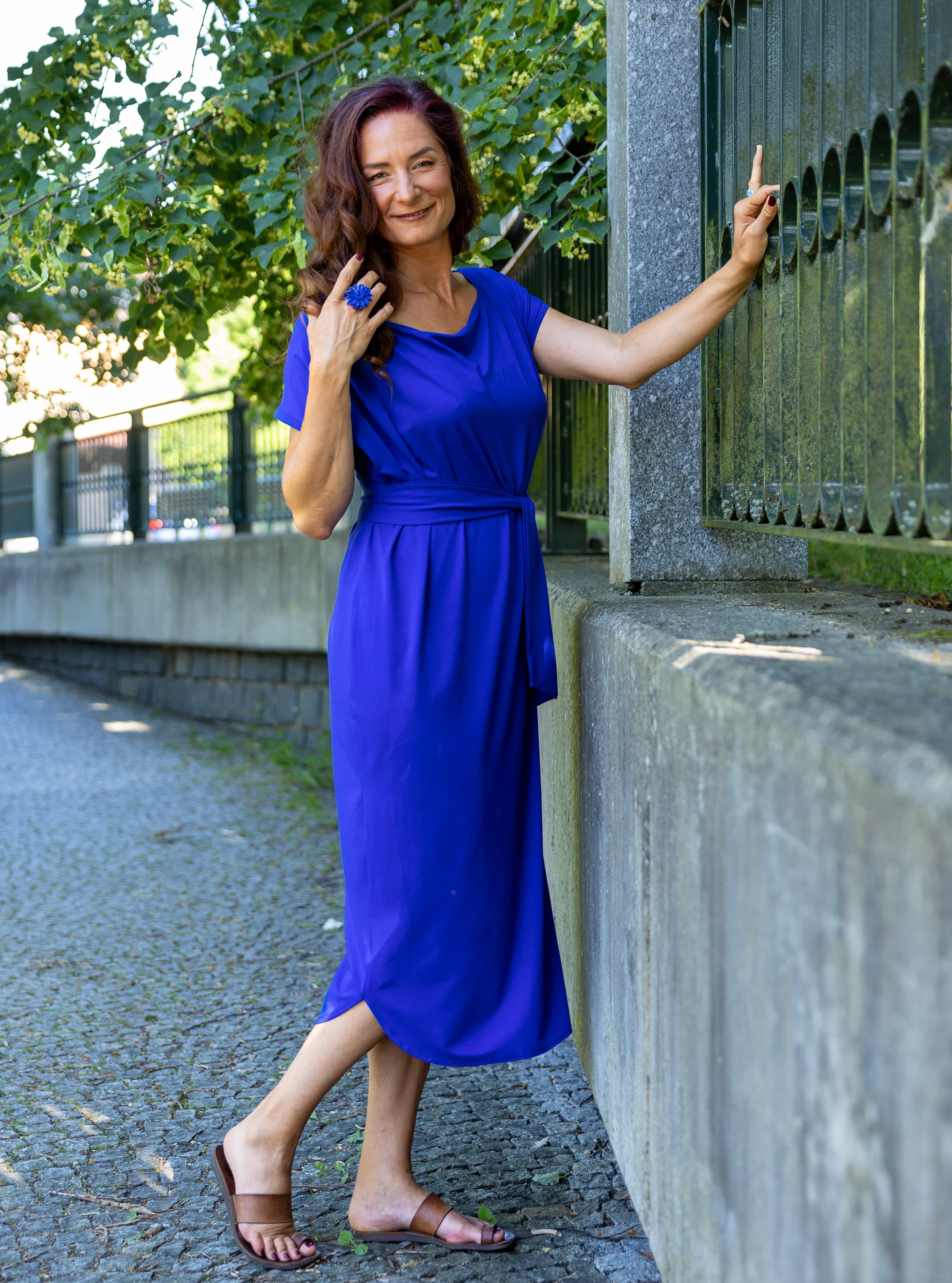 • Siluetu zvýrazníte širším páskem ze stejného materiálu. Díky splývavé a pružné viskóze nikde nevznikne zbytečný objem, látka se krásně přizpůsobí postavě a ukáže jen to, co chcete.