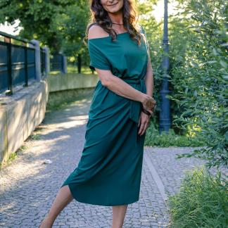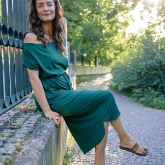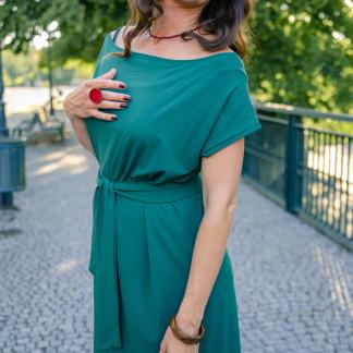 • Siluetu zvýrazníte širším páskem ze stejného materiálu. Díky splývavé a pružné viskóze nikde nevznikne zbytečný objem, látka se krásně přizpůsobí postavě a ukáže jen to, co chcete.