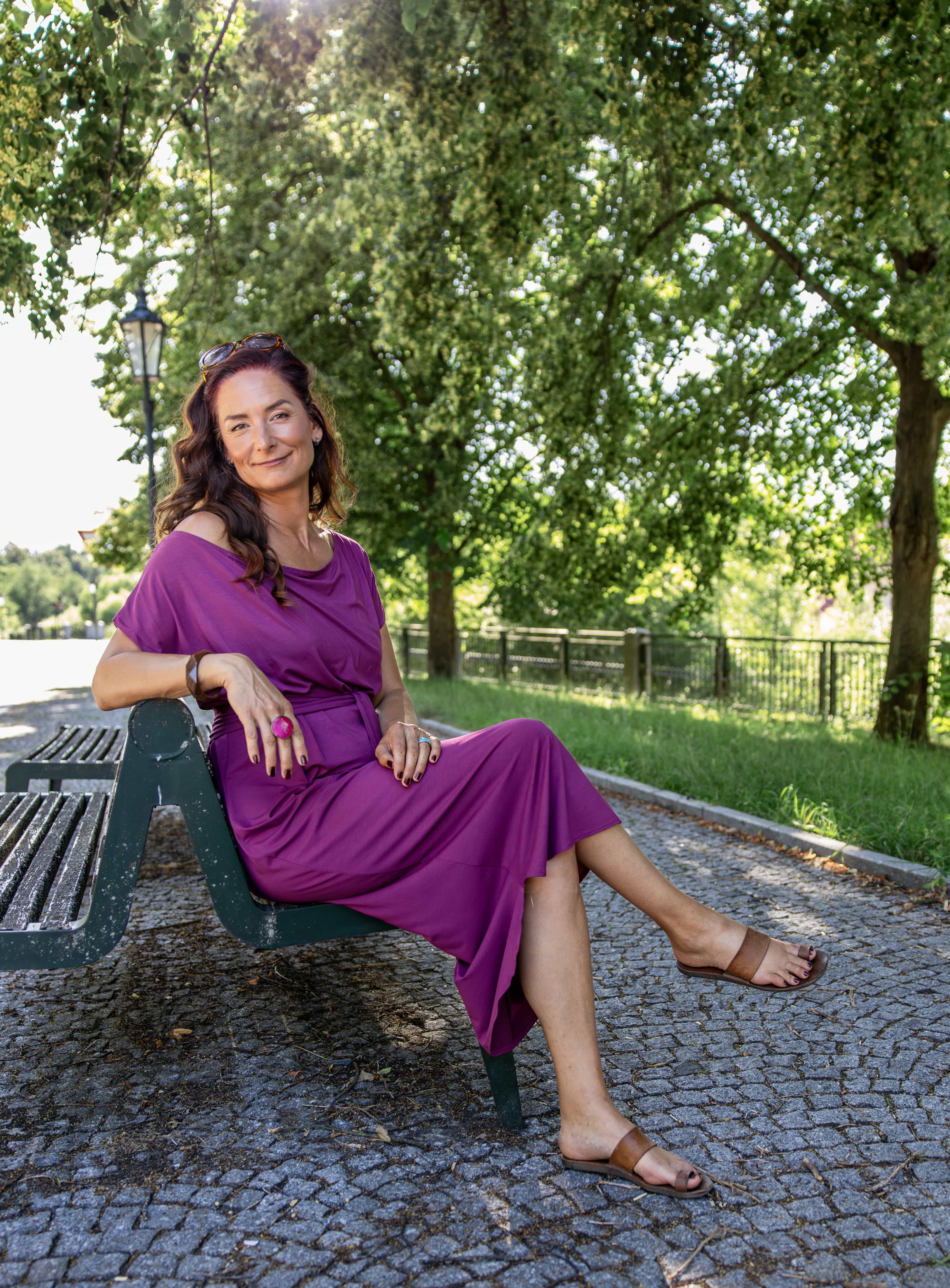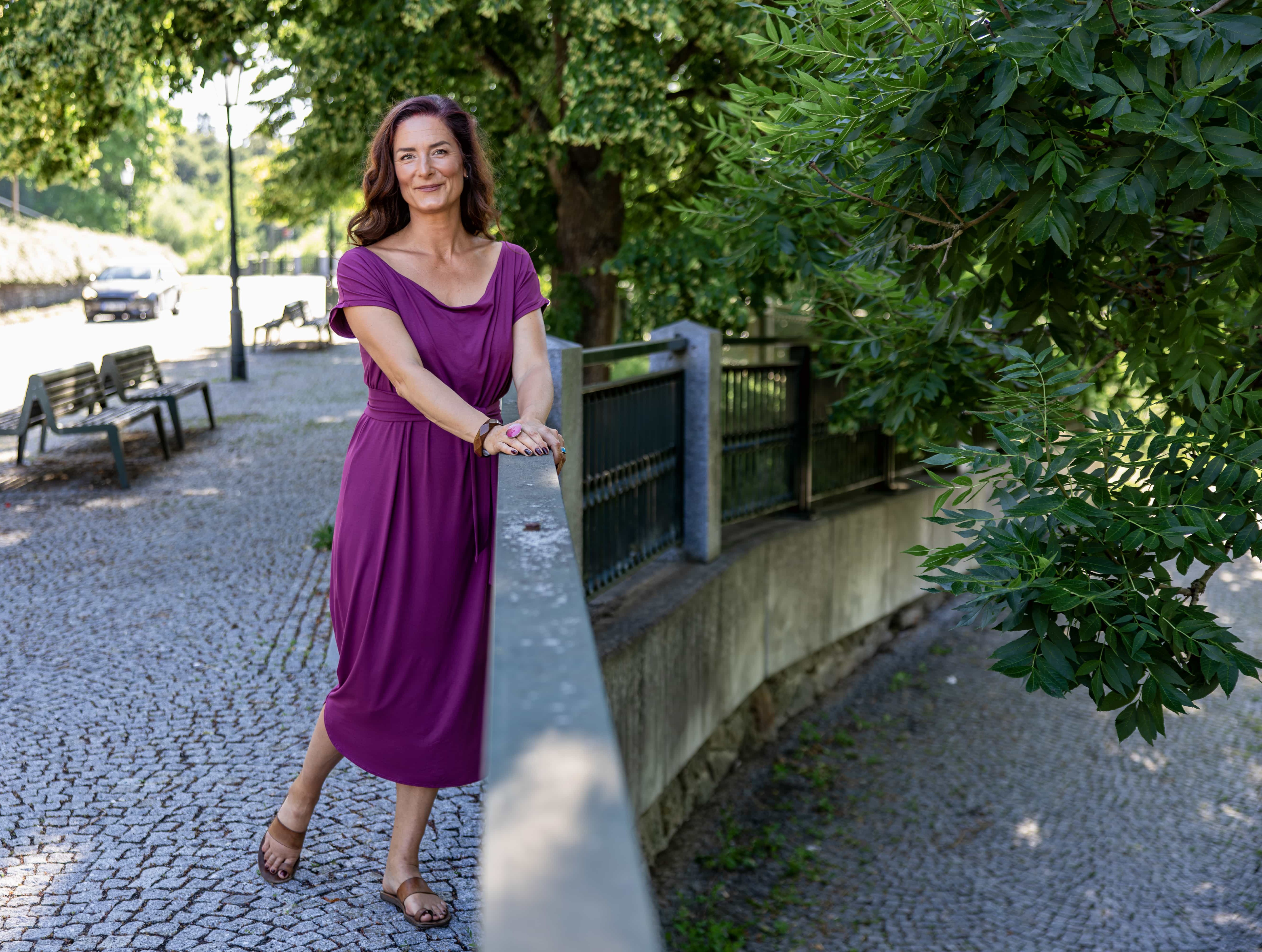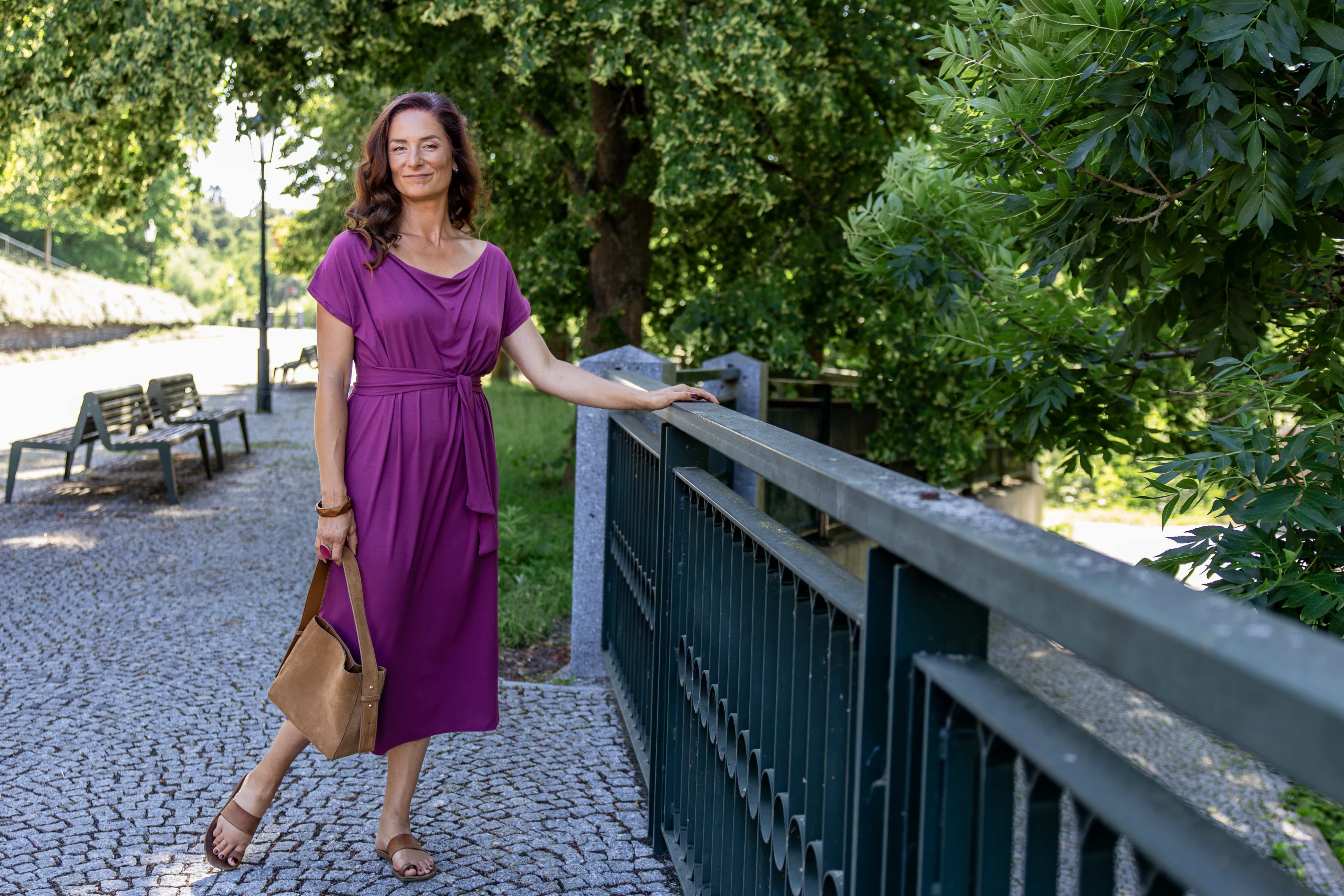 • Siluetu zvýrazníte širším páskem ze stejného materiálu. Díky splývavé a pružné viskóze nikde nevznikne zbytečný objem, látka se krásně přizpůsobí postavě a ukáže jen to, co chcete.