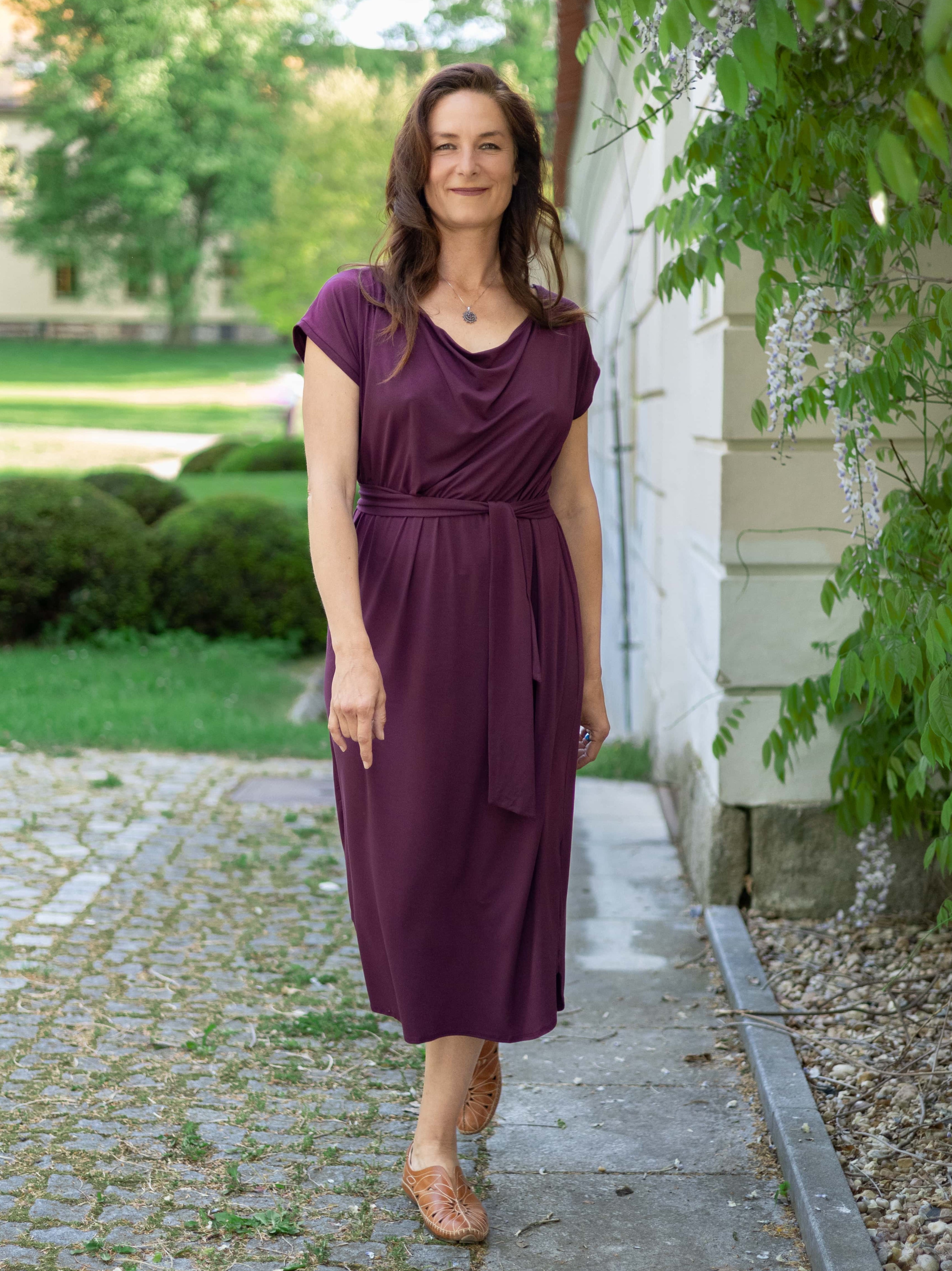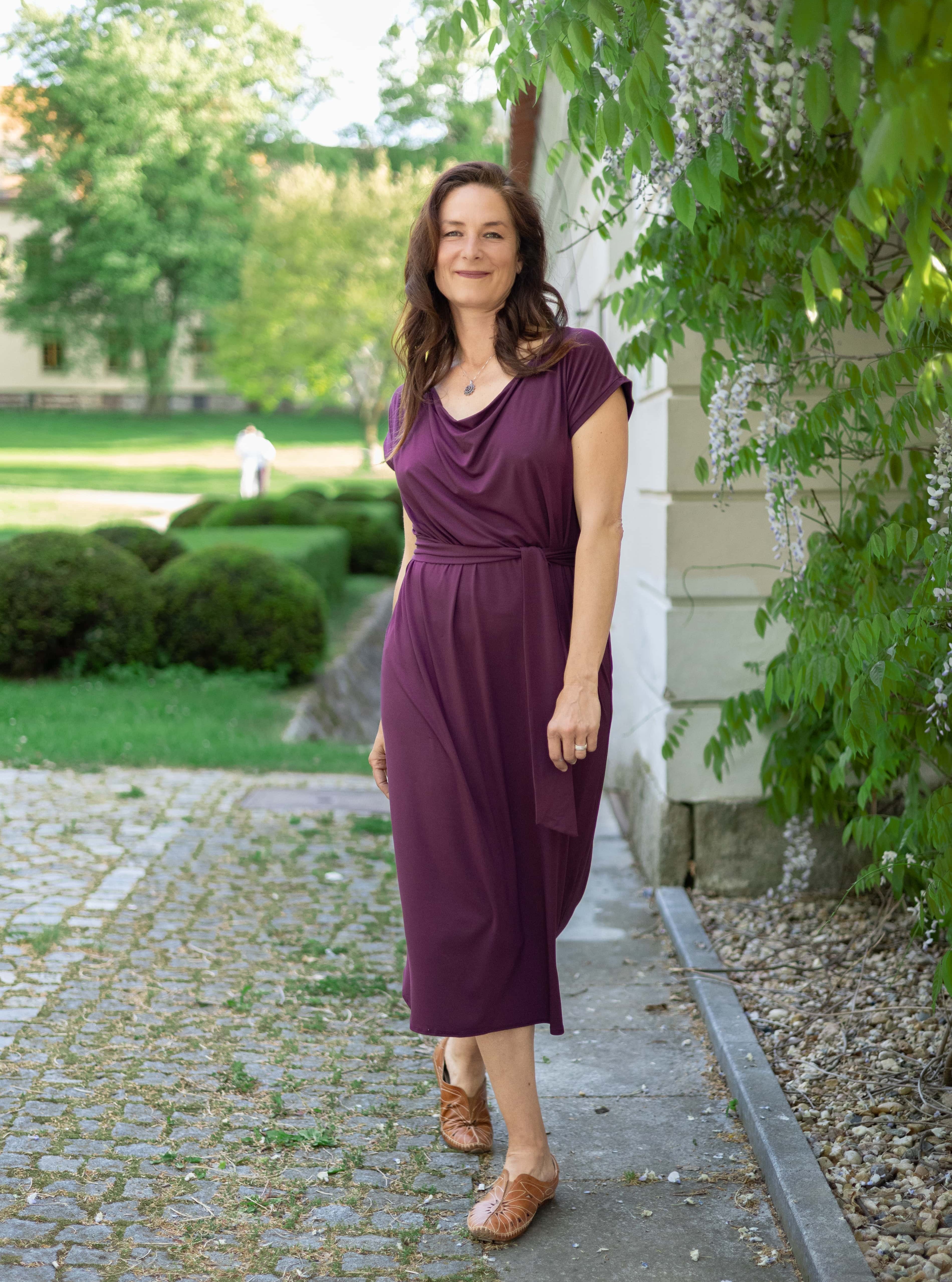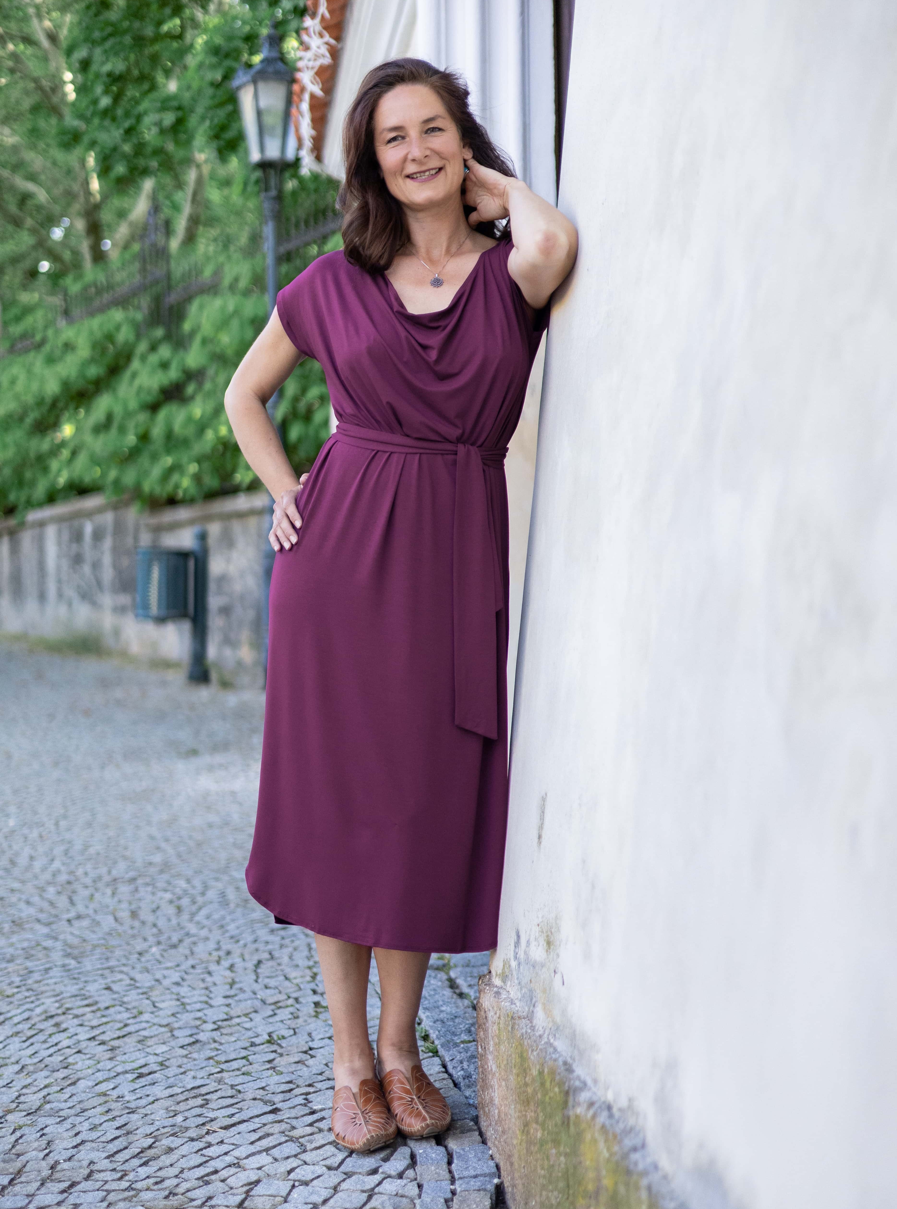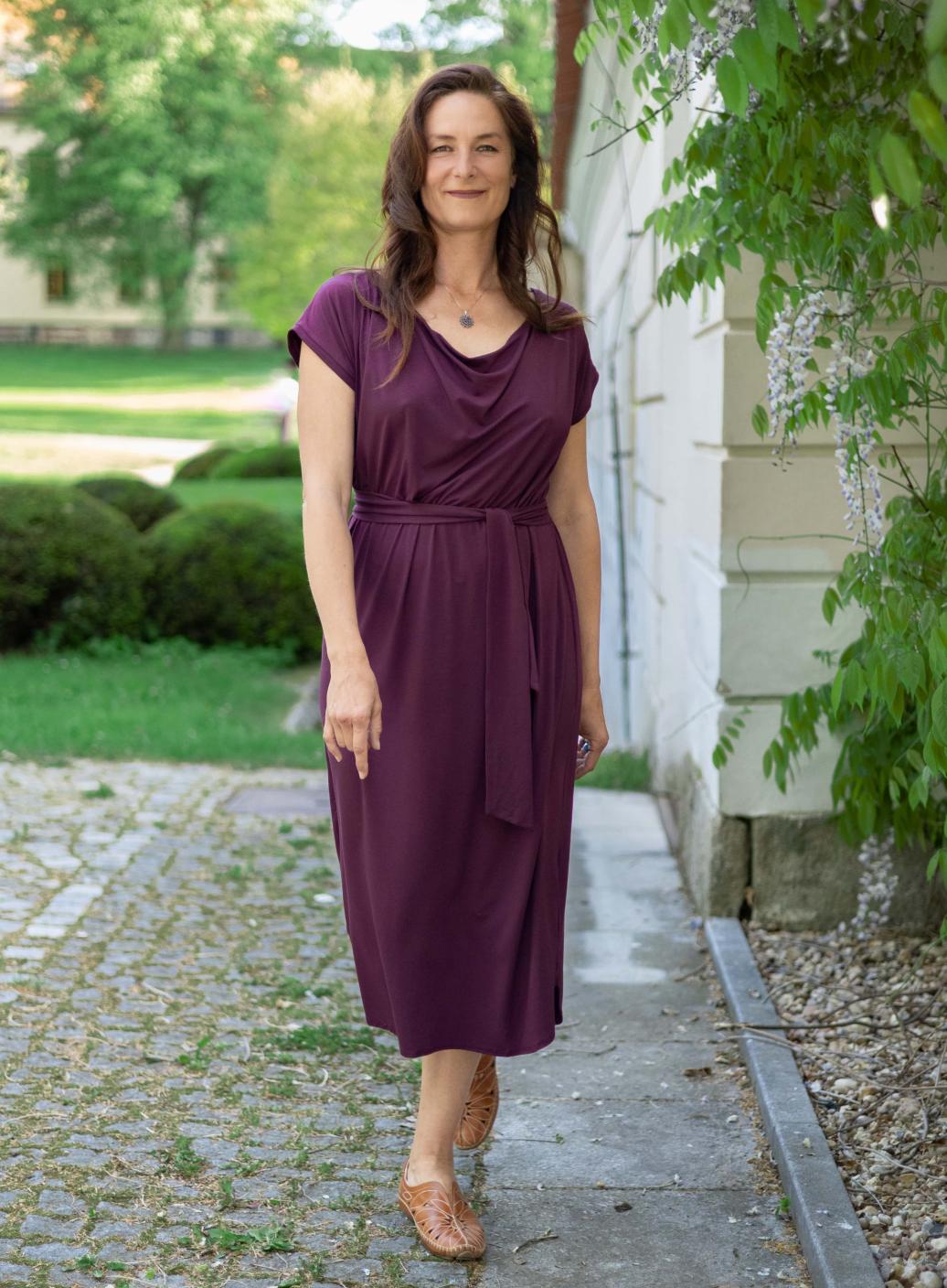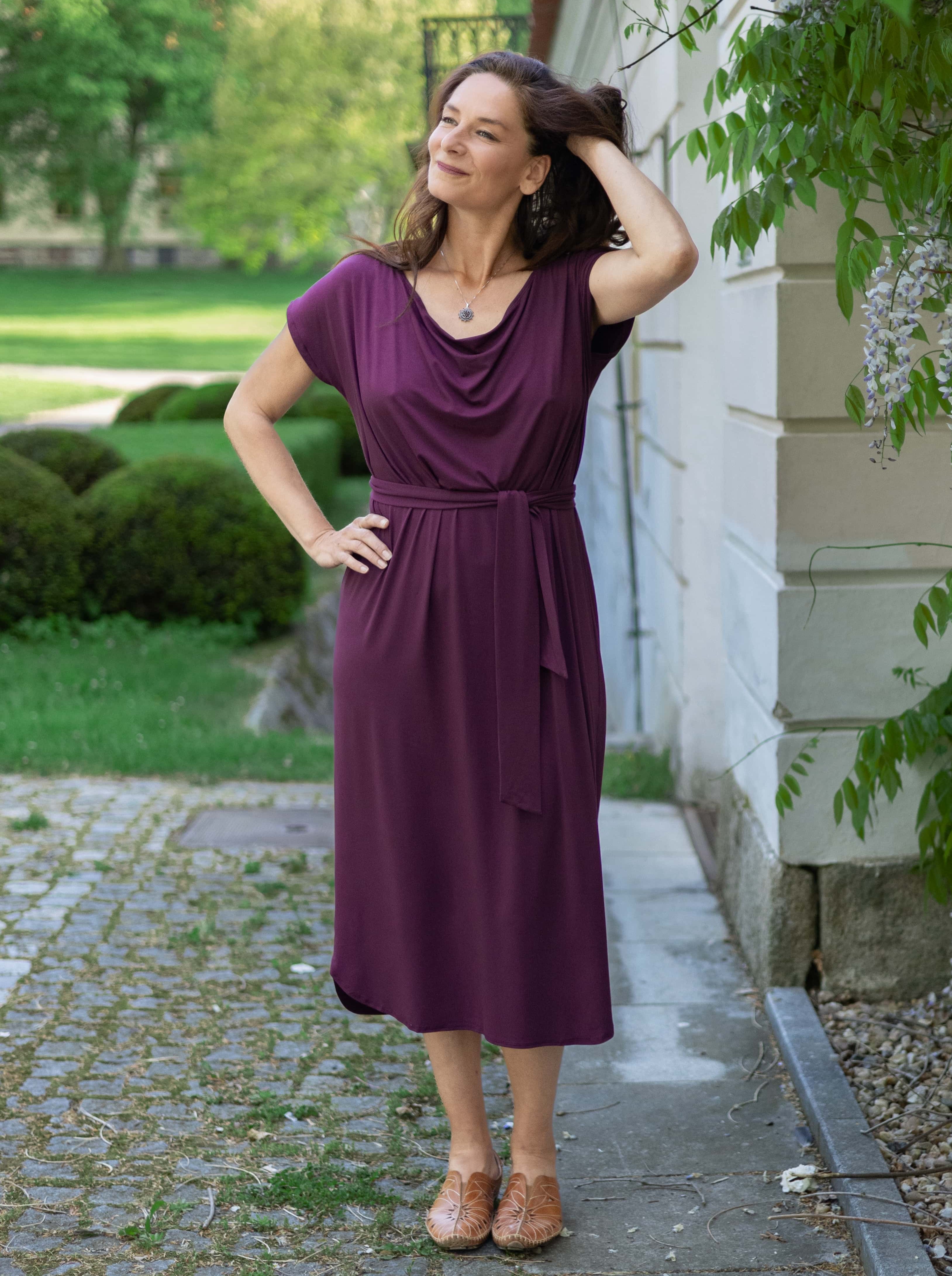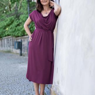 • Siluetu zvýrazníte širším páskem ze stejného materiálu. Díky splývavé a pružné viskóze nikde nevznikne zbytečný objem, látka se krásně přizpůsobí postavě a ukáže jen to, co chcete.