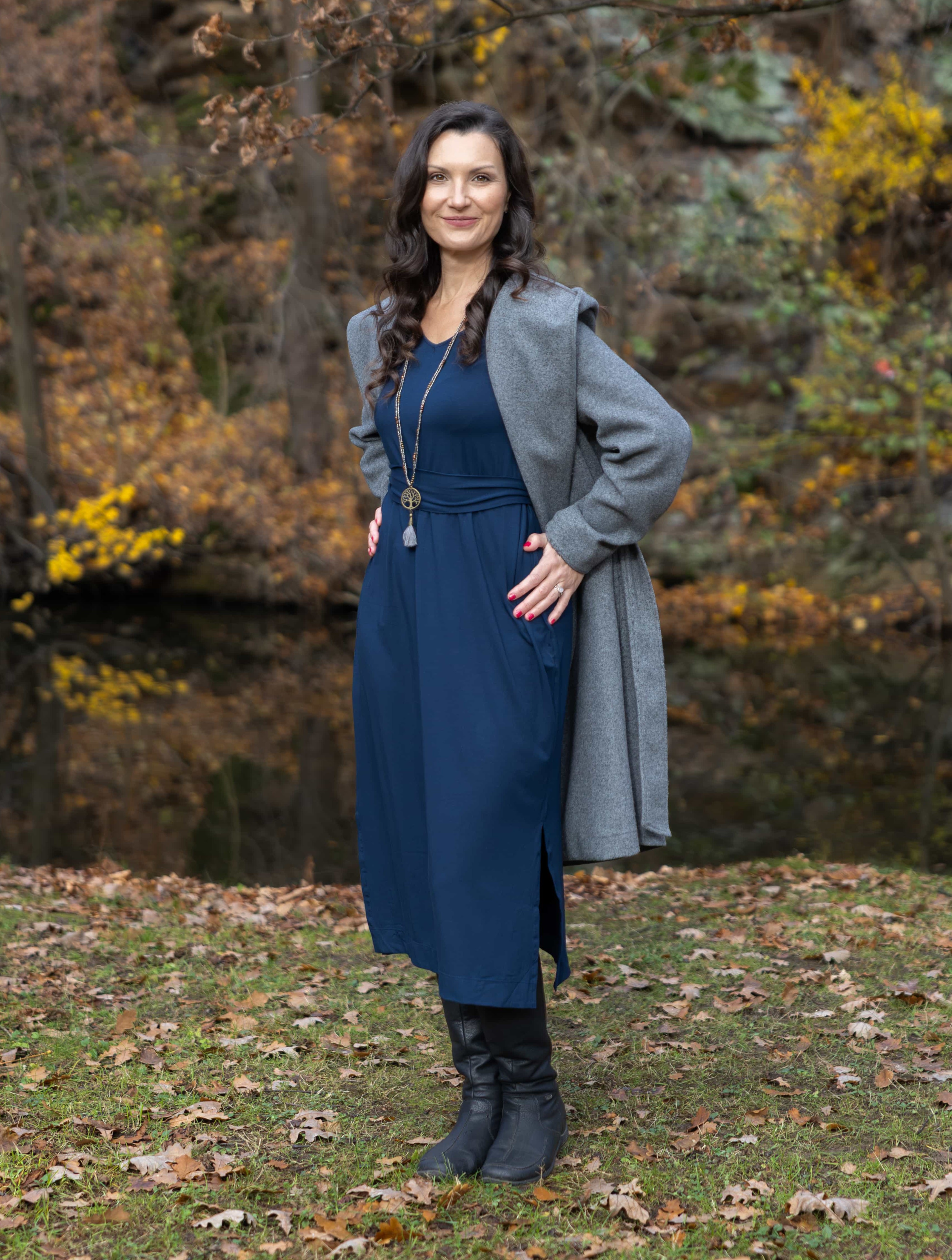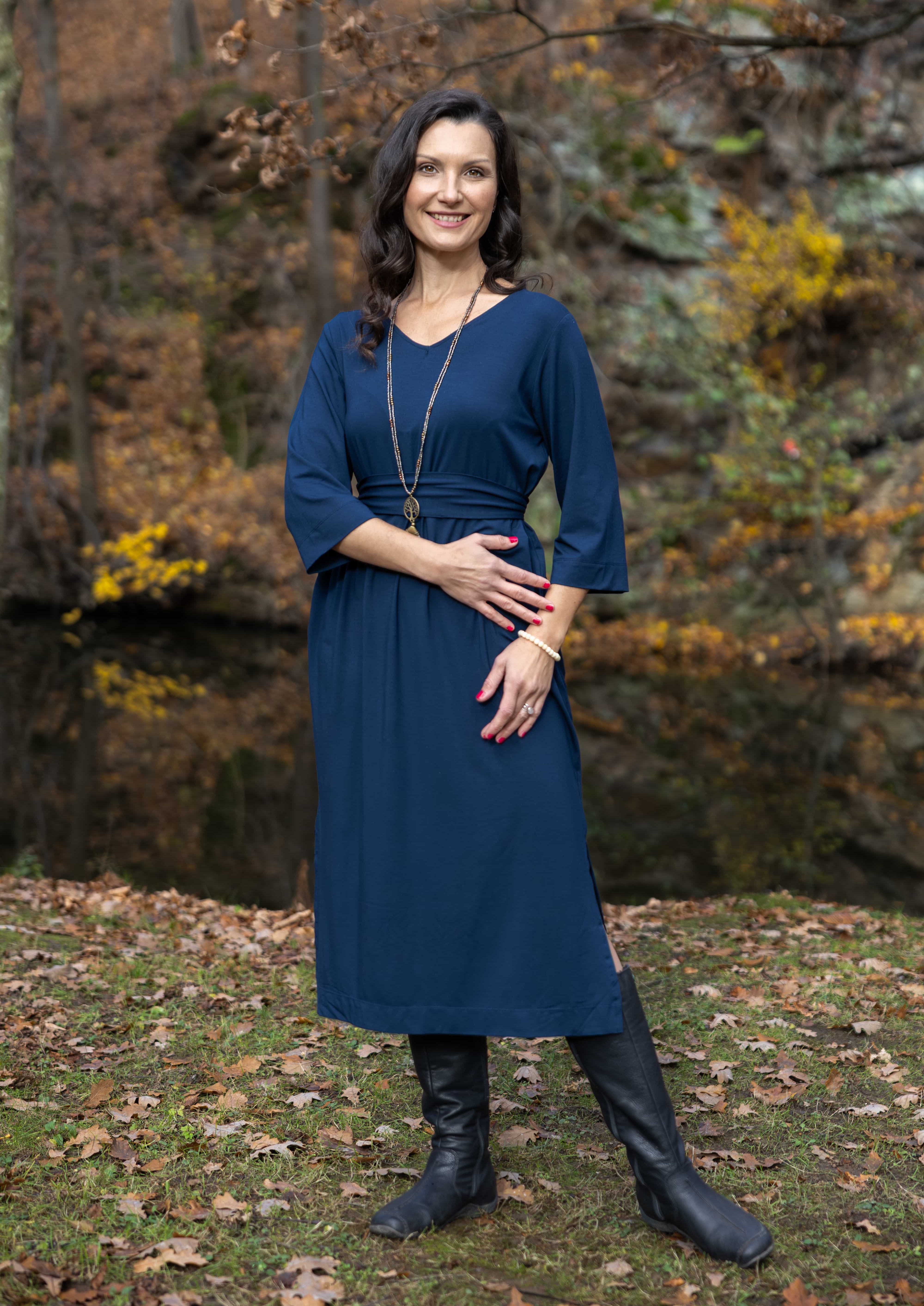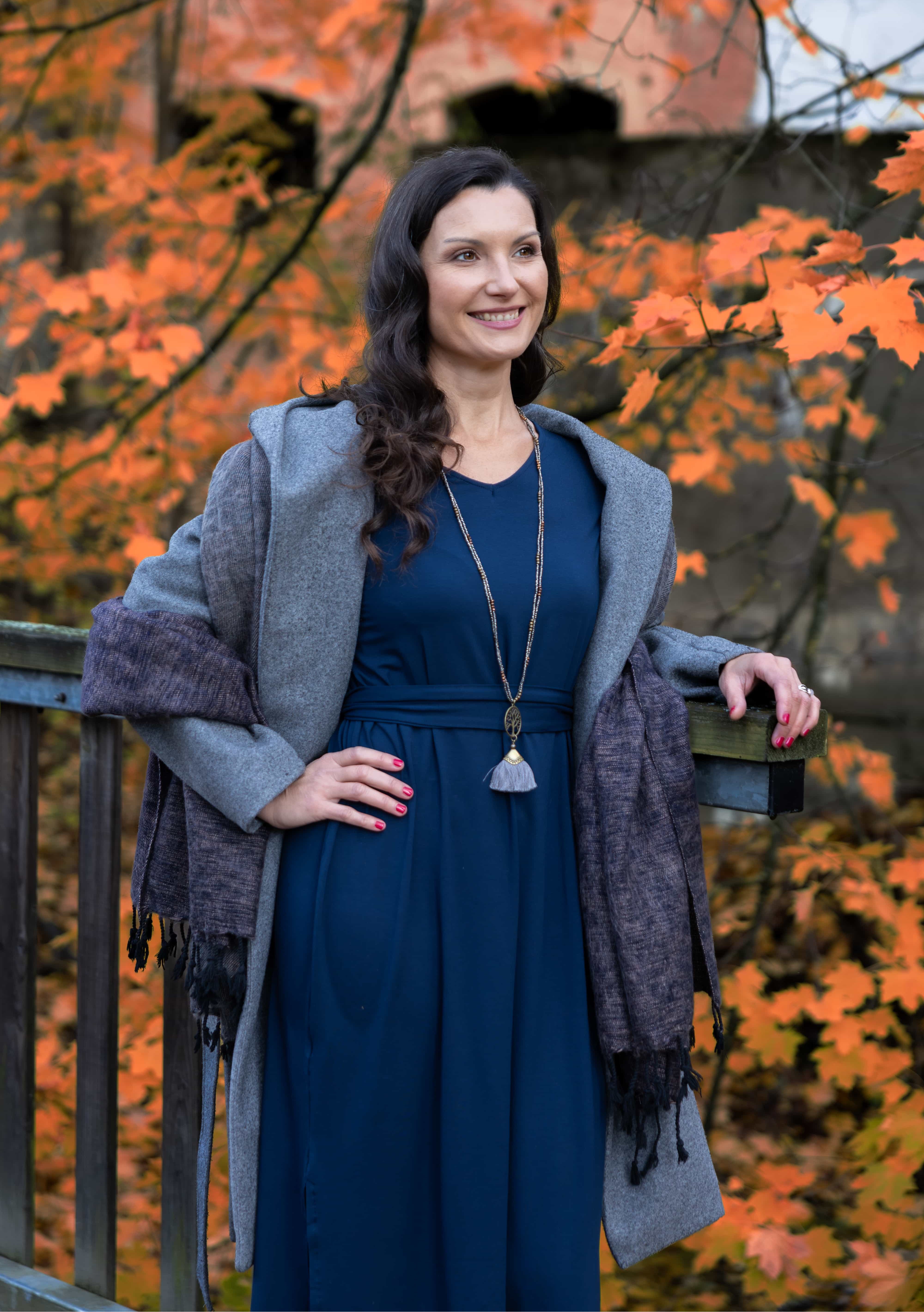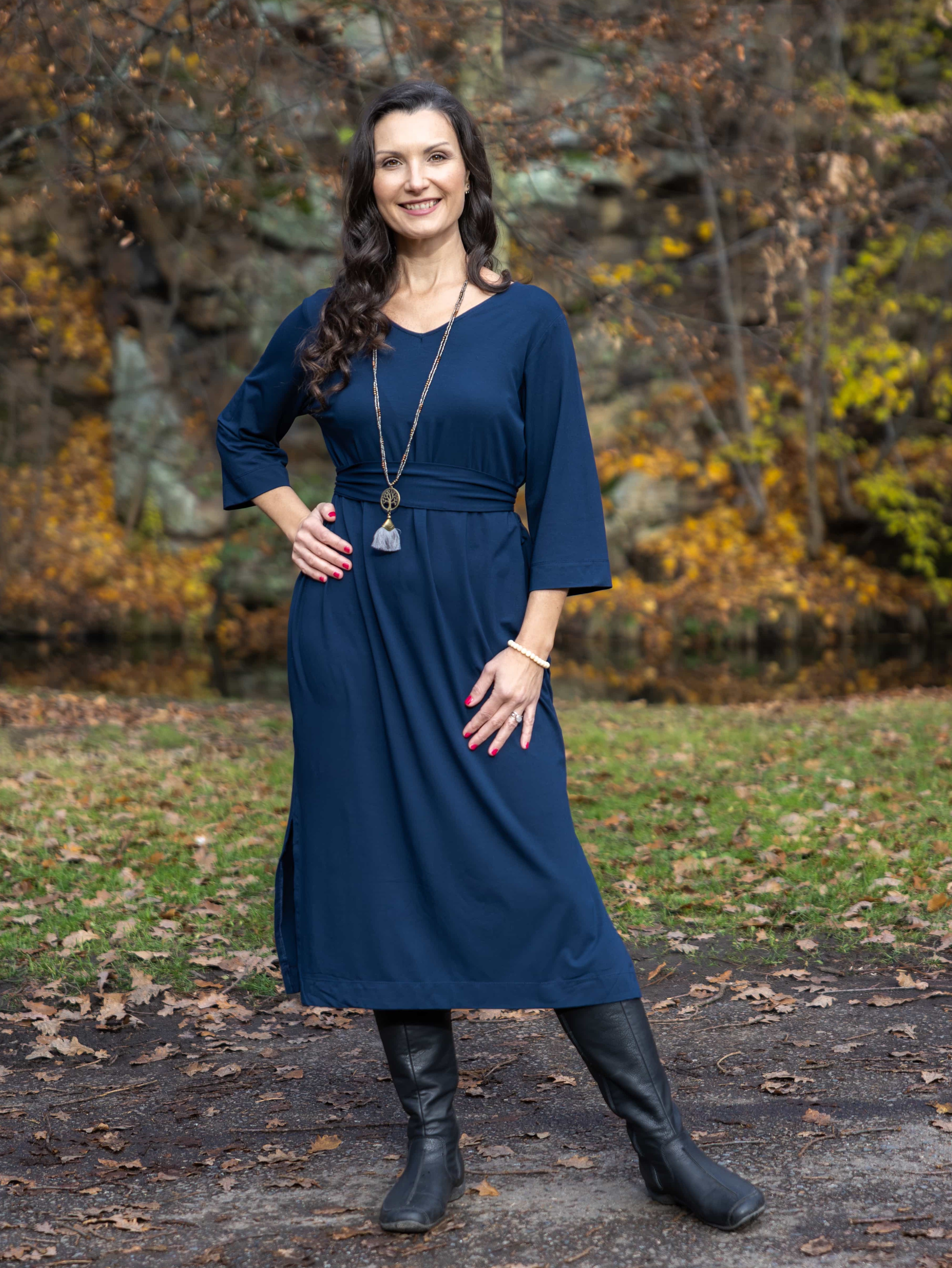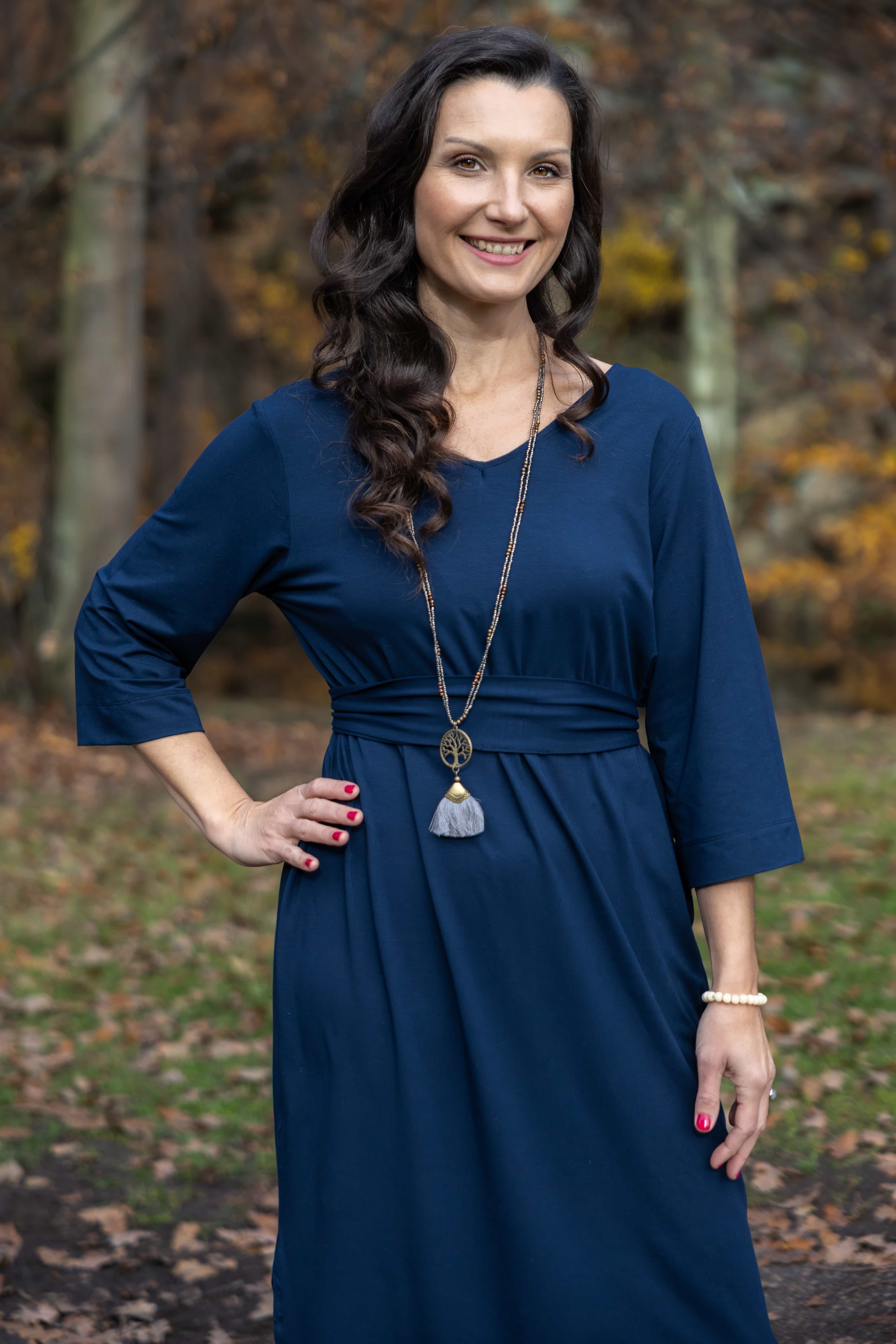 • Siluetu zvýrazníte širším páskem ze stejného materiálu. Díky splývavé viskóze nikde nevznikne zbytečný objem, látka se krásně přizpůsobí postavě a ukáže jen to, co chcete.