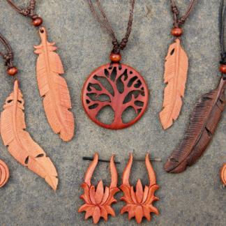 Tento šperk pro Vás vyrobila "dřevěná umělkyně" Made ve své rodinné řemeslné dílně. Made zpracovává dřevo s láskou a nesmírným talentem a citem pro detail. Made je matkou tří dětí a pracuje spolu se svým manželem. Nákupem tohoto výrobku podpoříte provoz dílny paní Made.