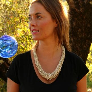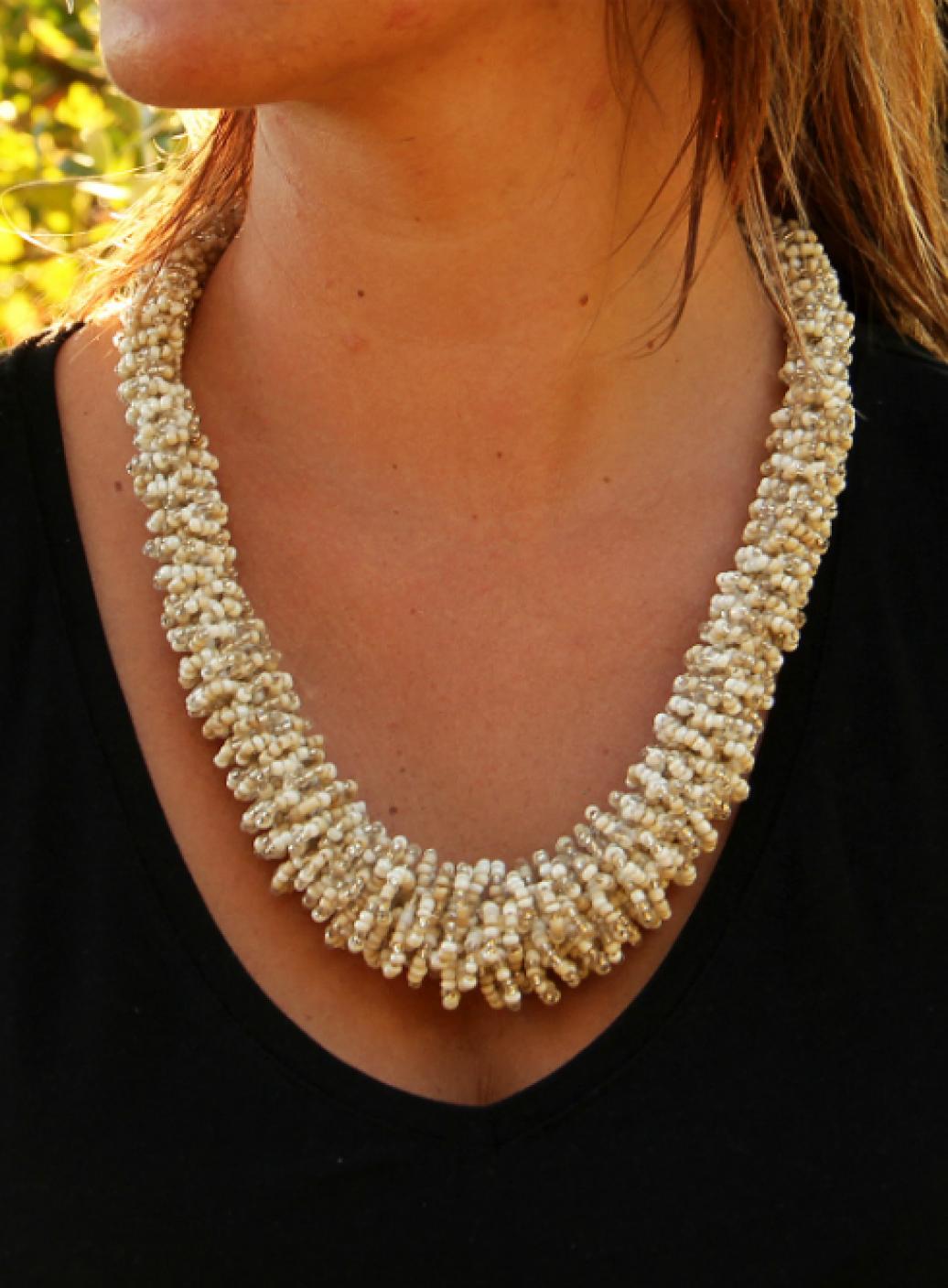 Zajímavý, elegantní a přitom jednoduchý náhrdelník pro běžné nošení i speciální příležitosti.Zapínání na korálkovou kuličku a poutko.