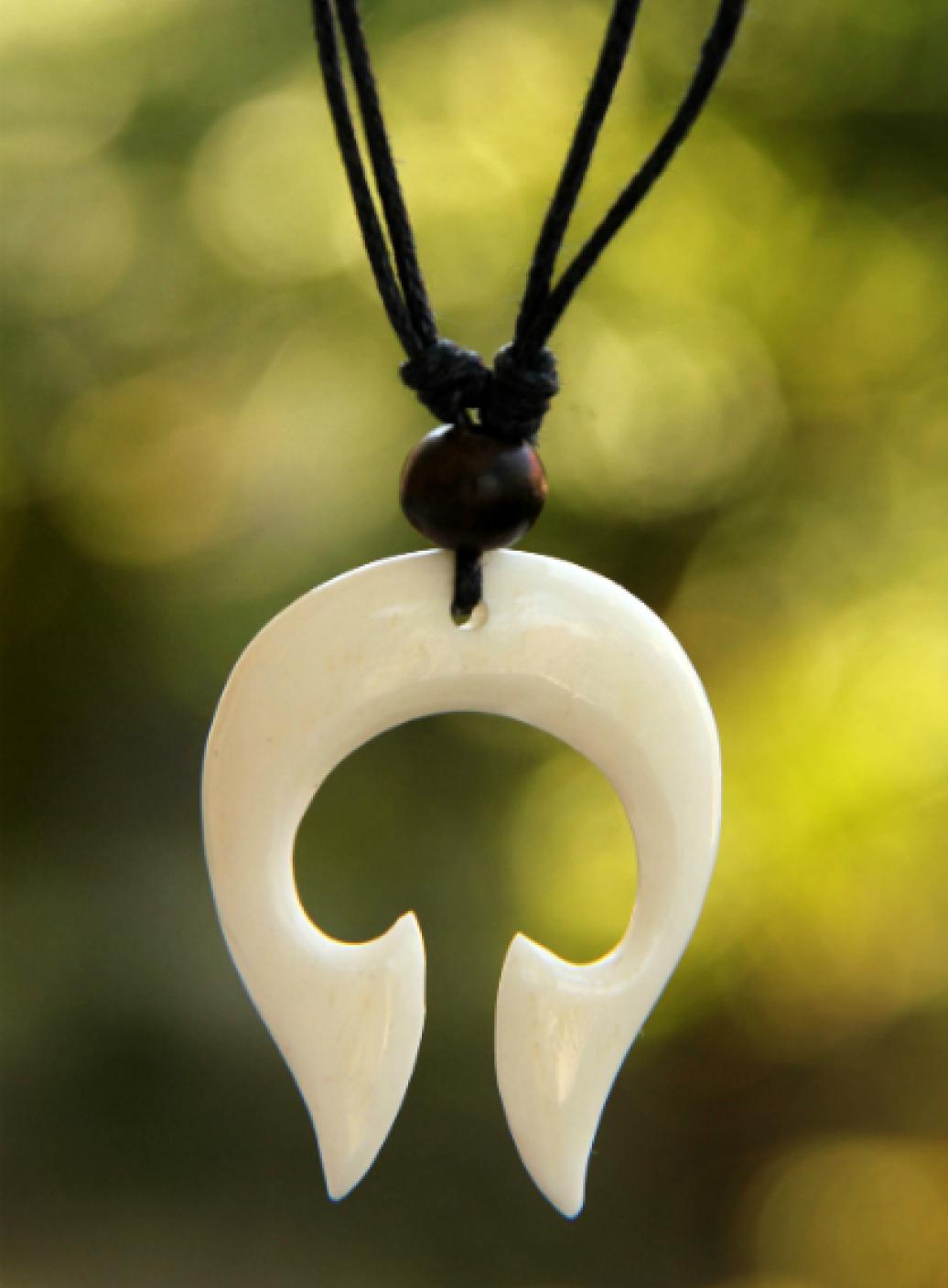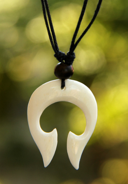 Dokonale ručně zhotovený symbolický kostěný přívešek. Díky klouzavému uzlíku lze náhrdelník přizpůsobit každému výstřihu. Vyrobeno z kosti vodního buvola.