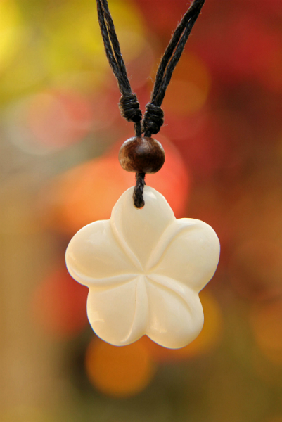 Dokonale ručně zhotovený symbolický kostěný přívešek. Díky klouzavému uzlíku lze náhrdelník přizpůsobit každému výstřihu. Vyrobeno z kosti vodního buvola.