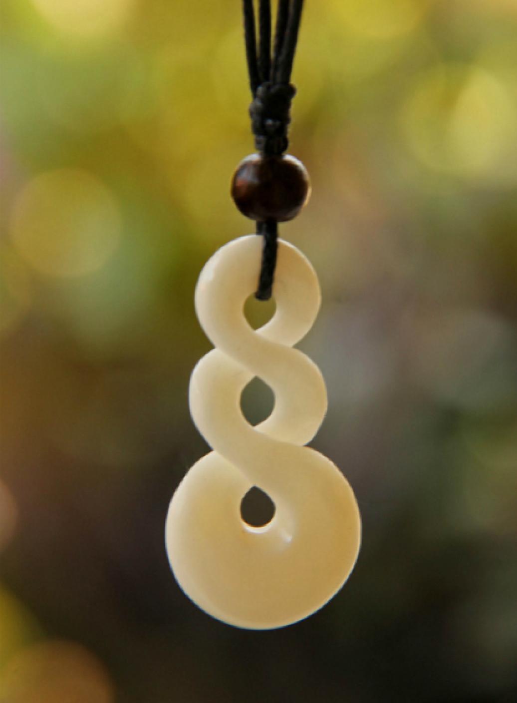 Dokonale ručně zhotovený symbolický kostěný přívešek. Díky klouzavému uzlíku lze náhrdelník přizpůsobit každému výstřihu. Vyrobeno z kosti vodního buvola.