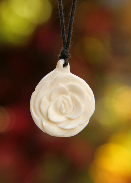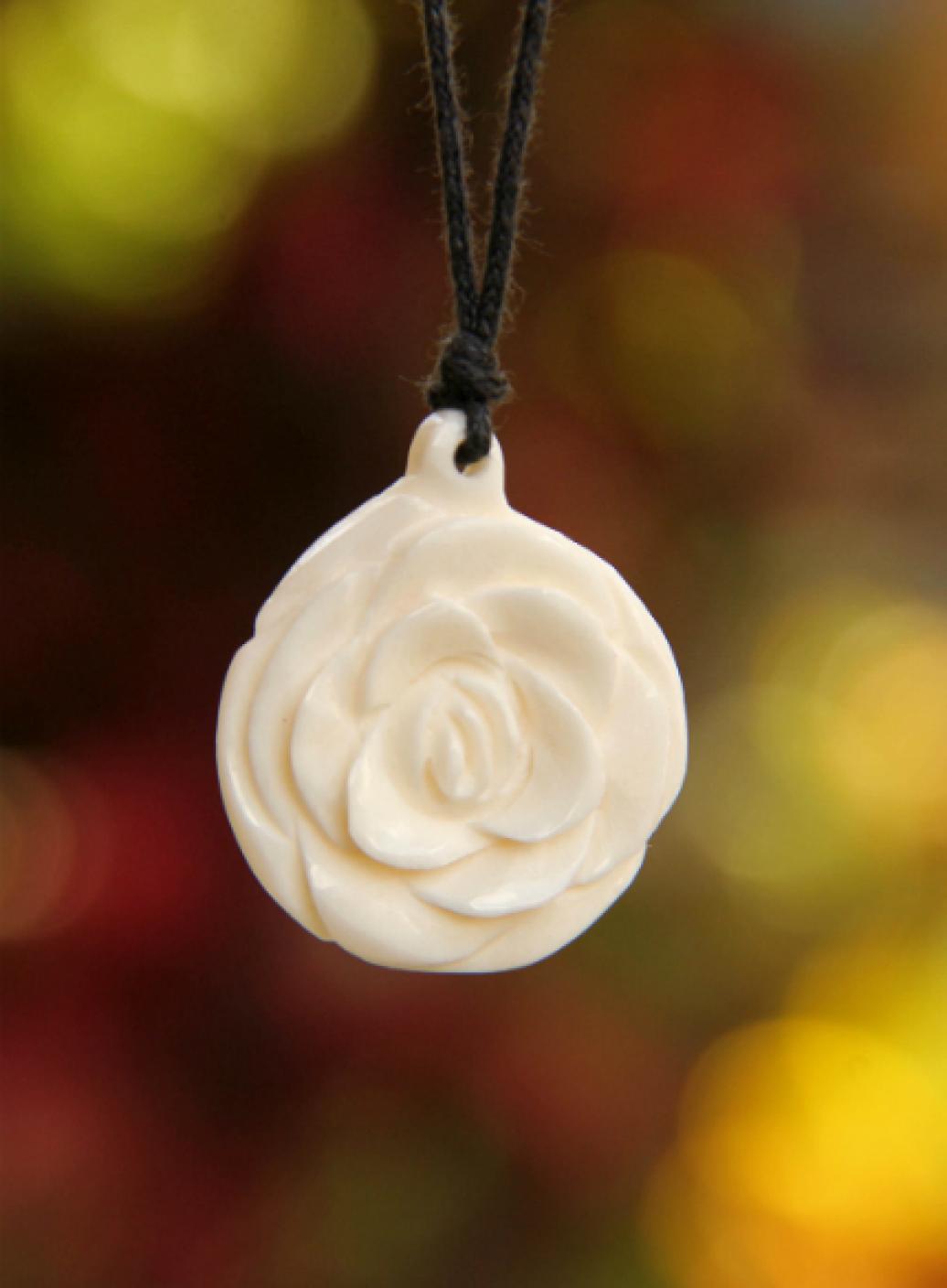 Dokonale ručně zhotovený symbolický kostěný přívešek. Díky klouzavému uzlíku lze náhrdelník přizpůsobit každému výstřihu. Vyrobeno z kosti vodního buvola.