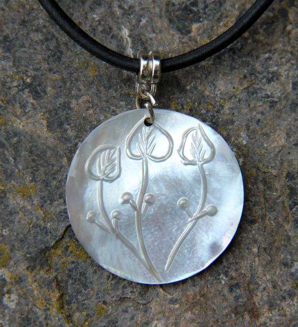 Jemný, žensky působící přívěsek z lesklé přírodní perleti doladí Váš jarní a letní šatník k dokonalosti! Přívěsek je ručně vyrobený, má průměr 3 cm.