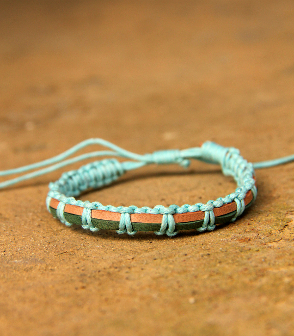 Oblíbený náramek pletený z bavlněného provázku.