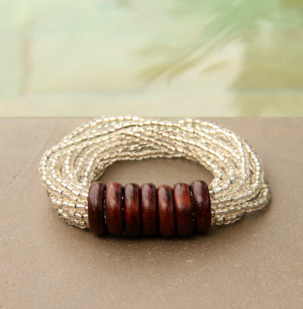 Korálkový náramek s dřevěnými kroužky