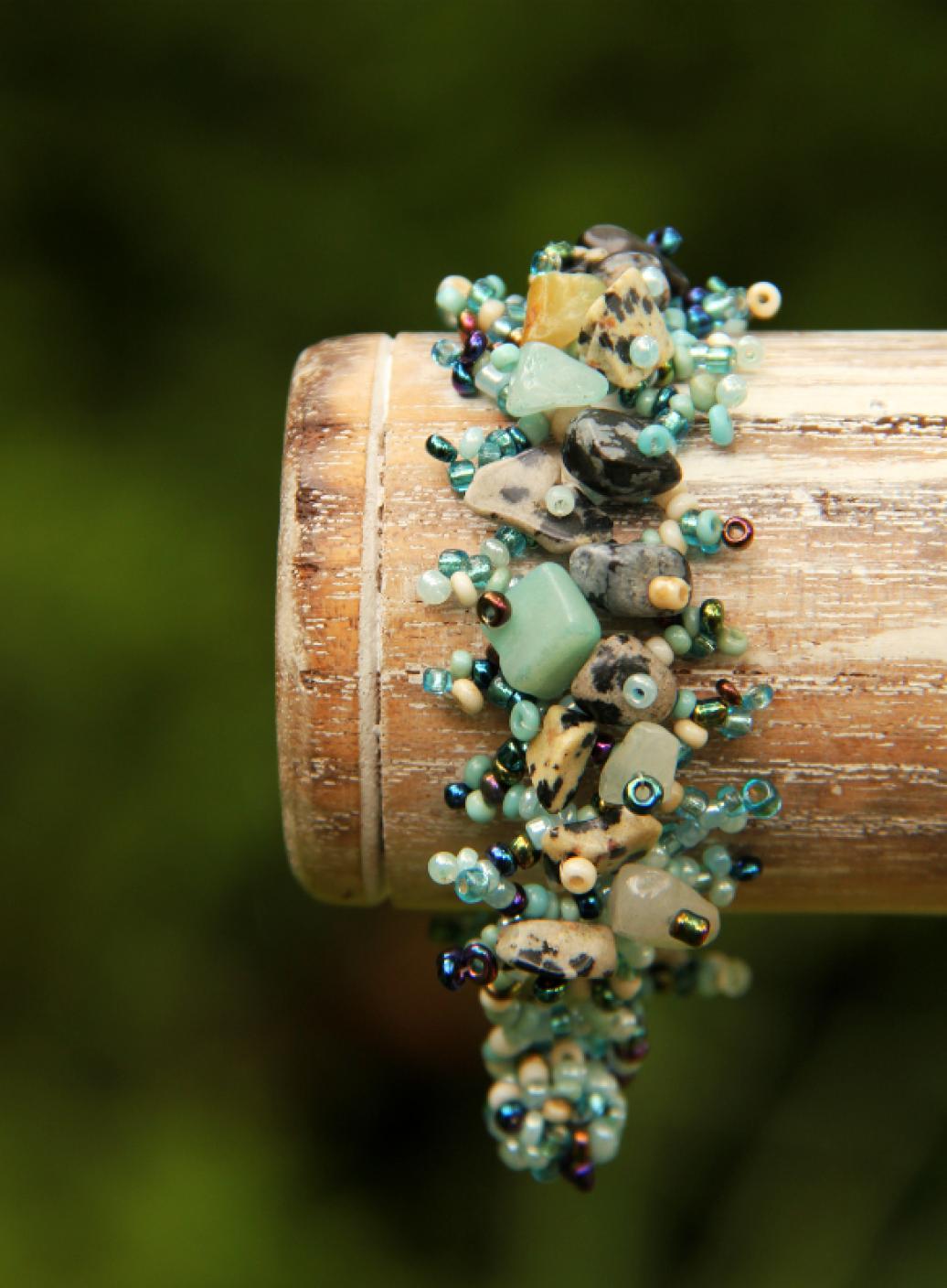 Šperk s harmonicky sladěnou paletou barevných korálků navlečeném na silinovém vlasci.