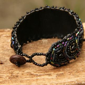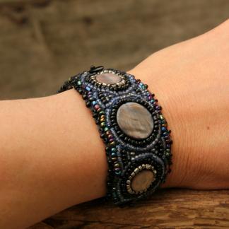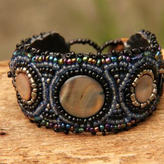 Korálkový náramek, vyšívaný, černomodrý