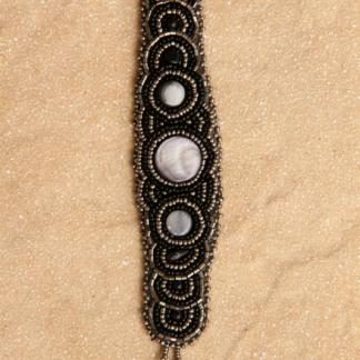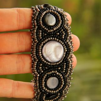 Šperk s harmonicky sladěnou paletou barevných přišívaných korálků a perleťových nuget.