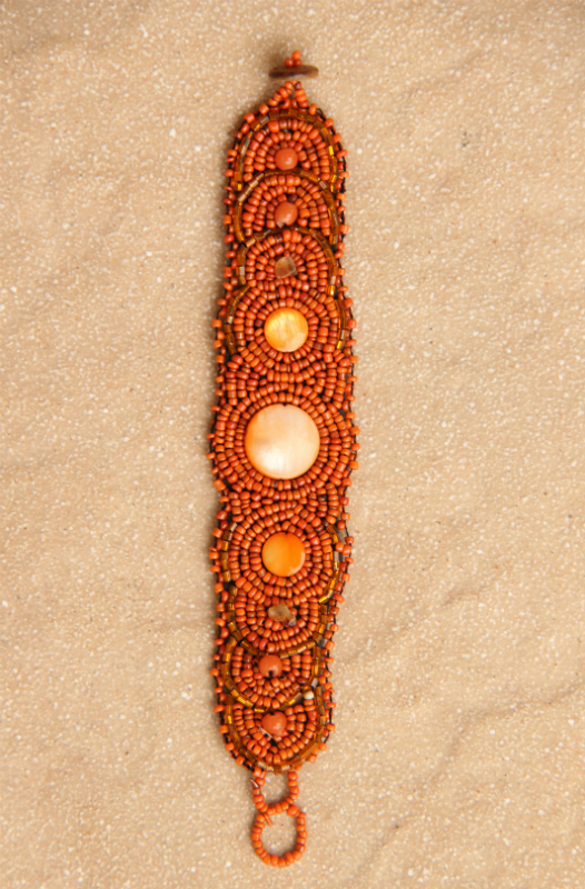 Tento náramek byl vyroben v rodinné dílně paní Nyoman v Indonésii. Paní Nyoman pracovala dlouhá léta jako pouliční prodavačka. Před 7 lety si pronajala svůj první kamenný obchod a dnes je úspěšnou podnikatelkou. Výrobou bižuterie zaměstnává 10 žen ze své vesnice.