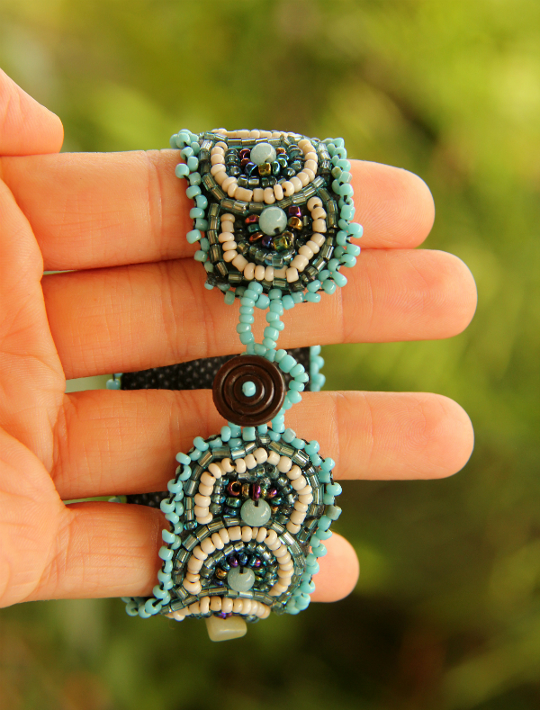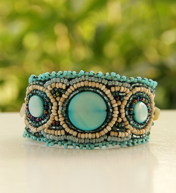 Korálkový náramek, vyšívaný, světle modrý