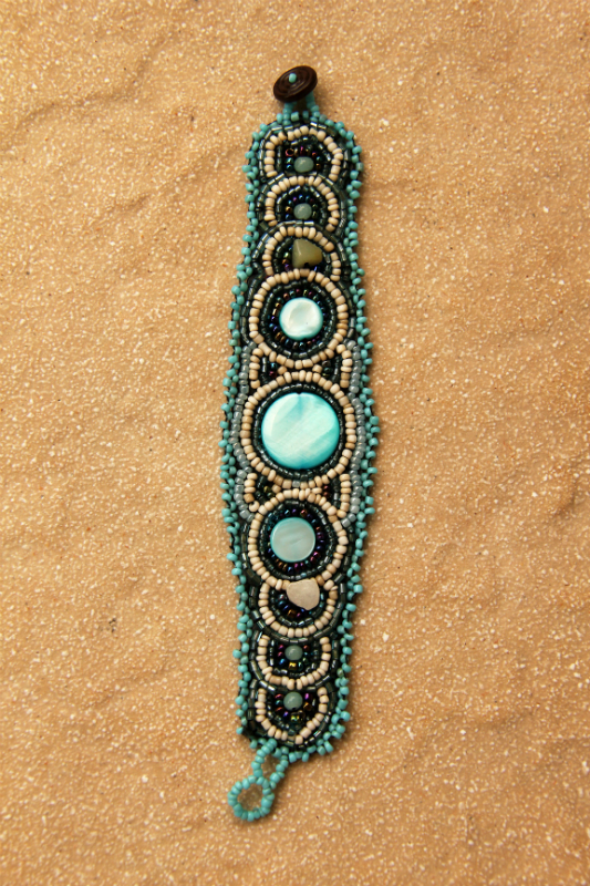 Tento náramek byl vyroben v rodinné dílně paní Nyoman v Indonésii. Paní Nyoman pracovala dlouhá léta jako pouliční prodavačka. Před 7 lety si pronajala svůj první kamenný obchod a dnes je úspěšnou podnikatelkou. Výrobou bižuterie zaměstnává 10 žen ze své vesnice.