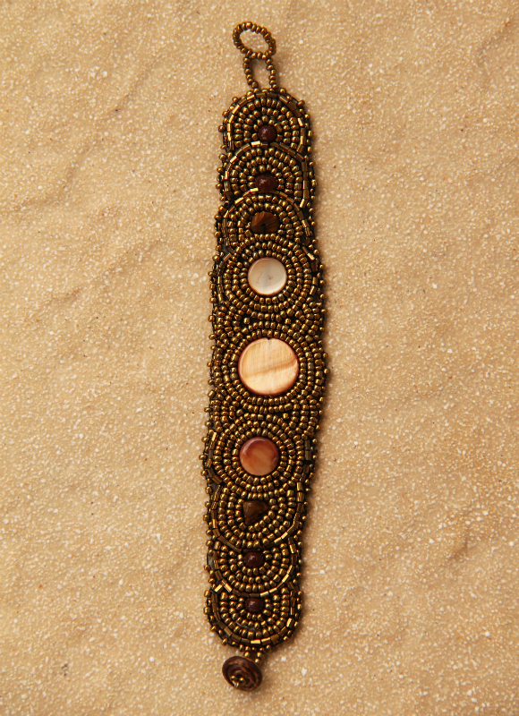 Tento náramek byl vyroben v rodinné dílně paní Nyoman v Indonésii. Paní Nyoman pracovala dlouhá léta jako pouliční prodavačka. Před 7 lety si pronajala svůj první kamenný obchod a dnes je úspěšnou podnikatelkou. Výrobou bižuterie zaměstnává 10 žen ze své vesnice.
