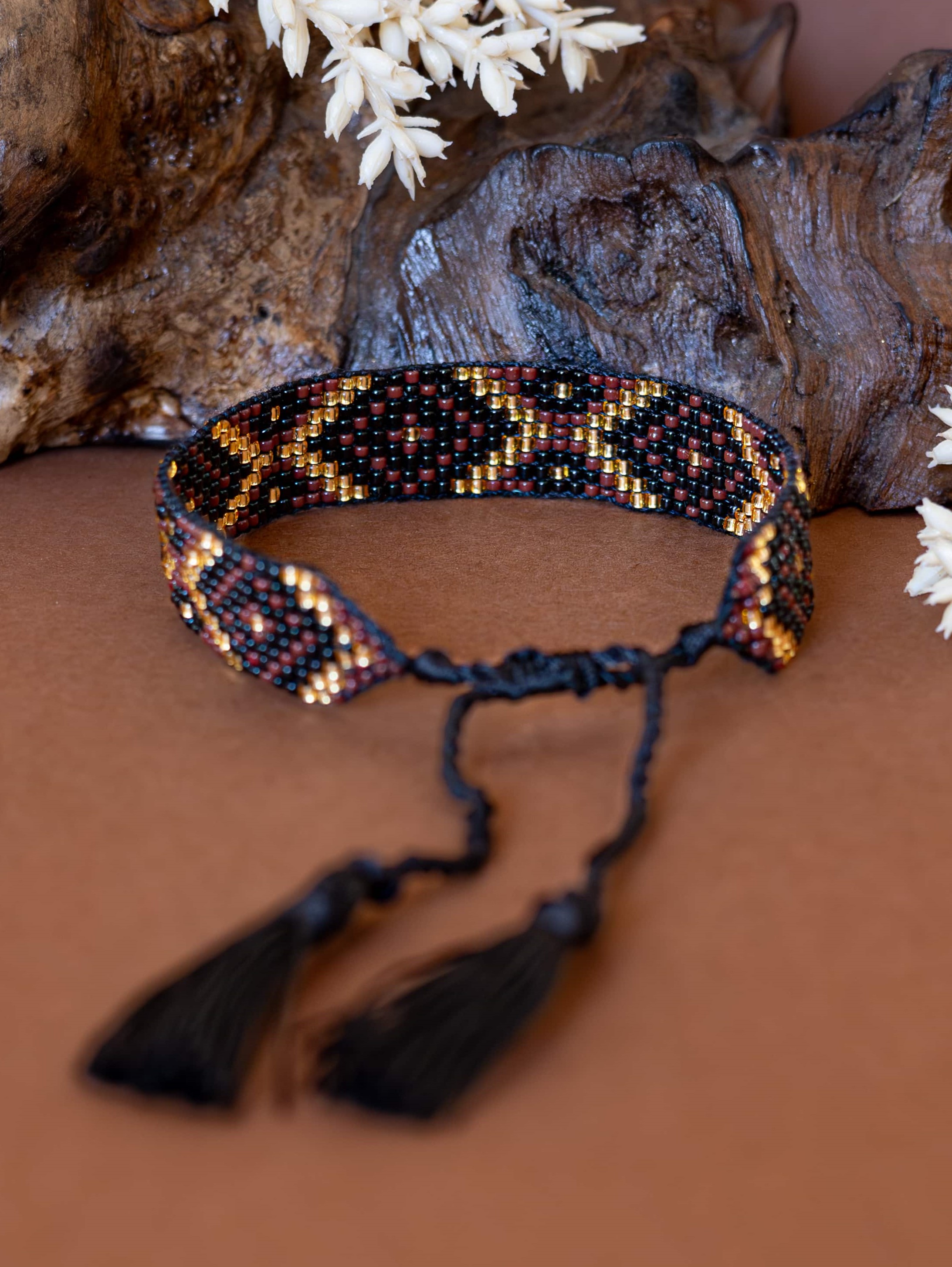 Díky klouzavému uzlíku ukončenému stylovými střapci se snadno přizpůsobí každému typu zápěstí a poskytuje maximální pohodlí při nošení. Hodí se jak pro běžné nošení, tak pro výjimečné příležitosti, kdy chcete zazářit.