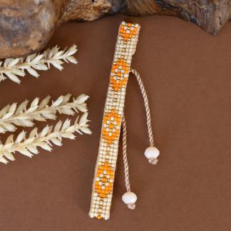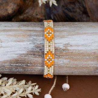 Elegantní a nadčasový náramek ručně vyrobený z drobných japonských korálků Miyuki. Tento jedinečný kousek má 5 řad korálků, které vytvářejí jemný geometrický vzor, a jeho šířka 1 cm z něj dělá nepřehlédnutelný doplněk.