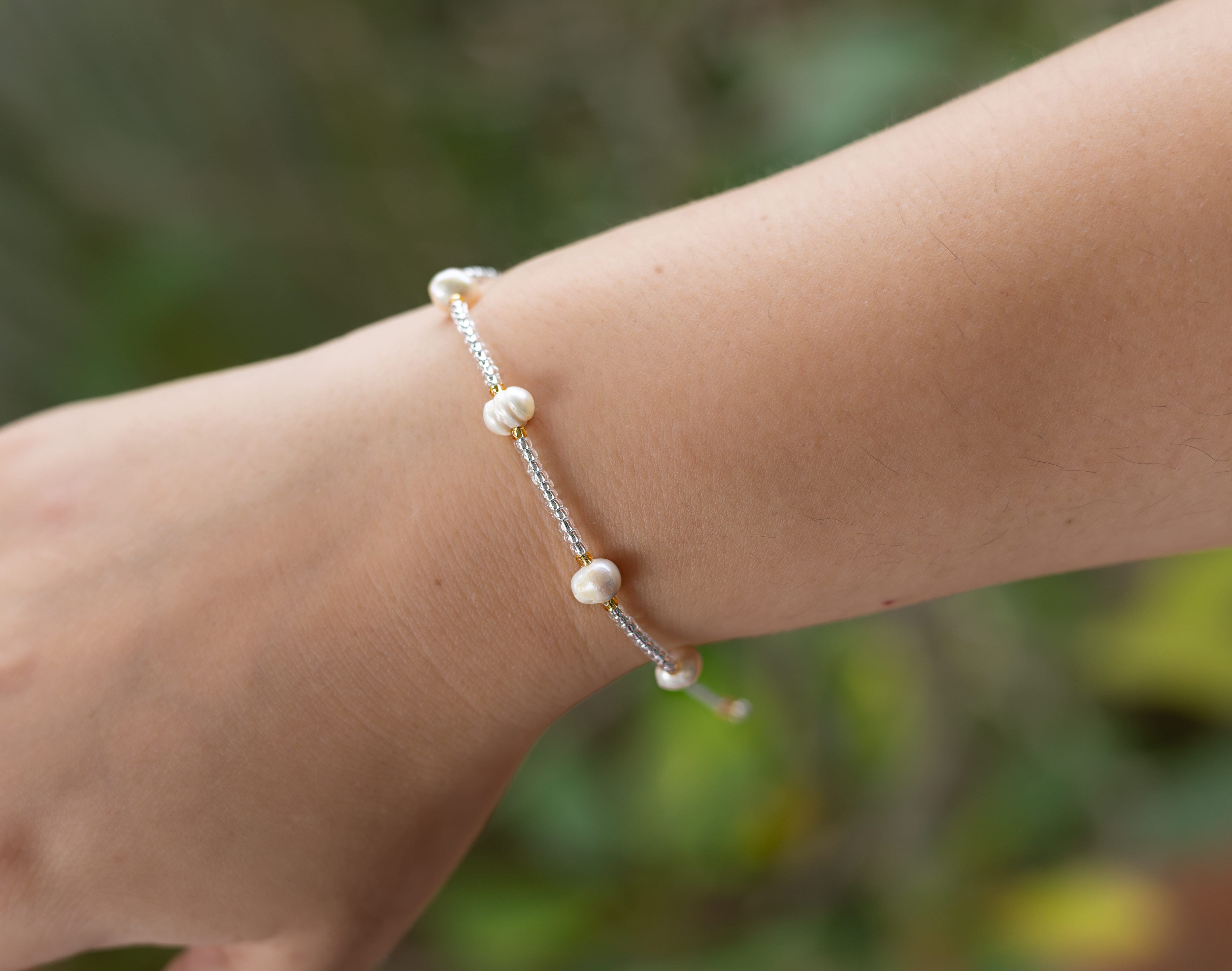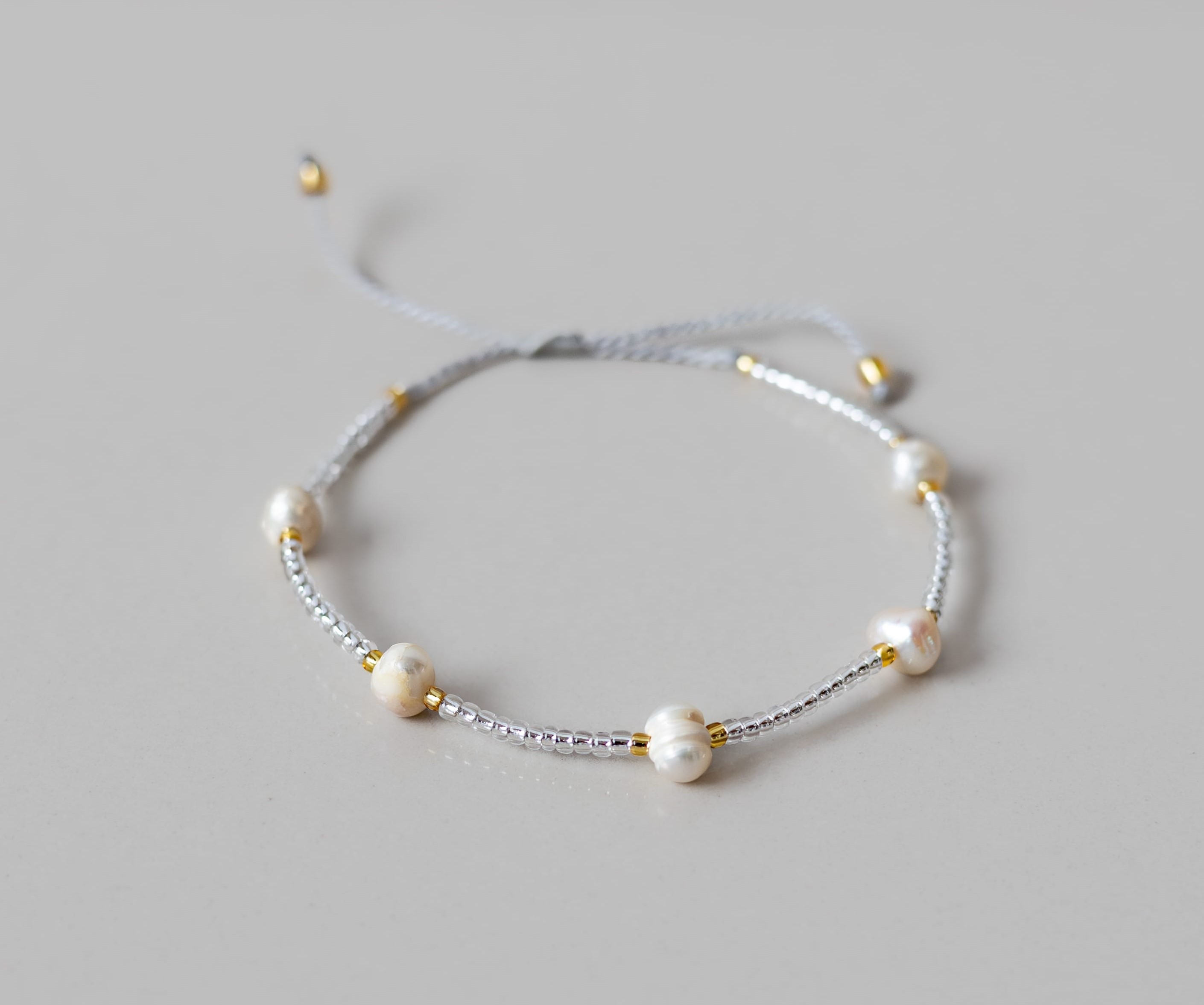 Ručně vyráběný z japonských korálků Miyuki a bílých perel, tento náramek nejenže vyzařuje vkus, ale je i skvělým módním trendy doplňkem.
