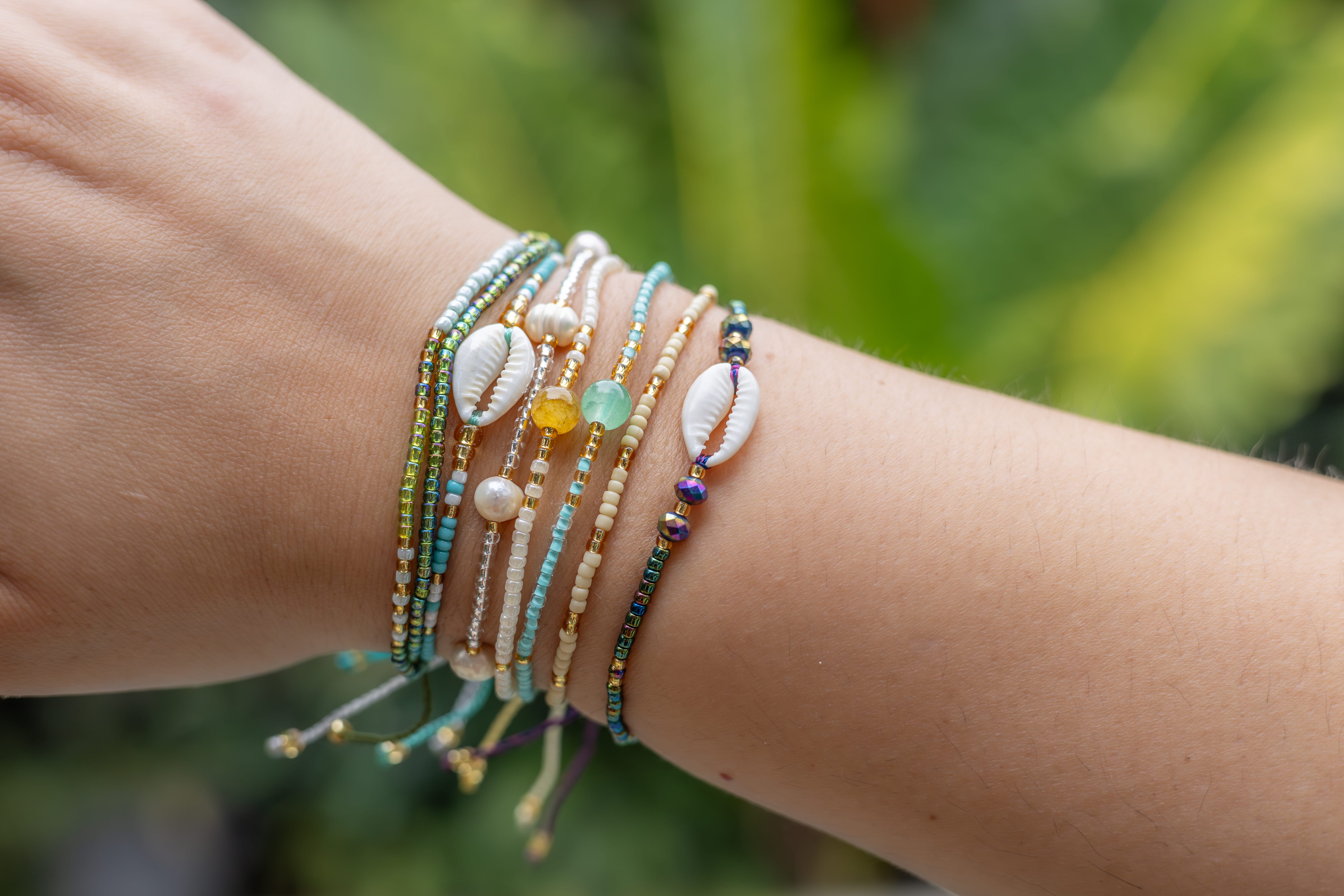 Ručně vyráběný z japonských korálků Miyuki a bílé mušle, tento náramek nejenže vyzařuje vkus, ale je i skvělým módním trendy doplňkem.