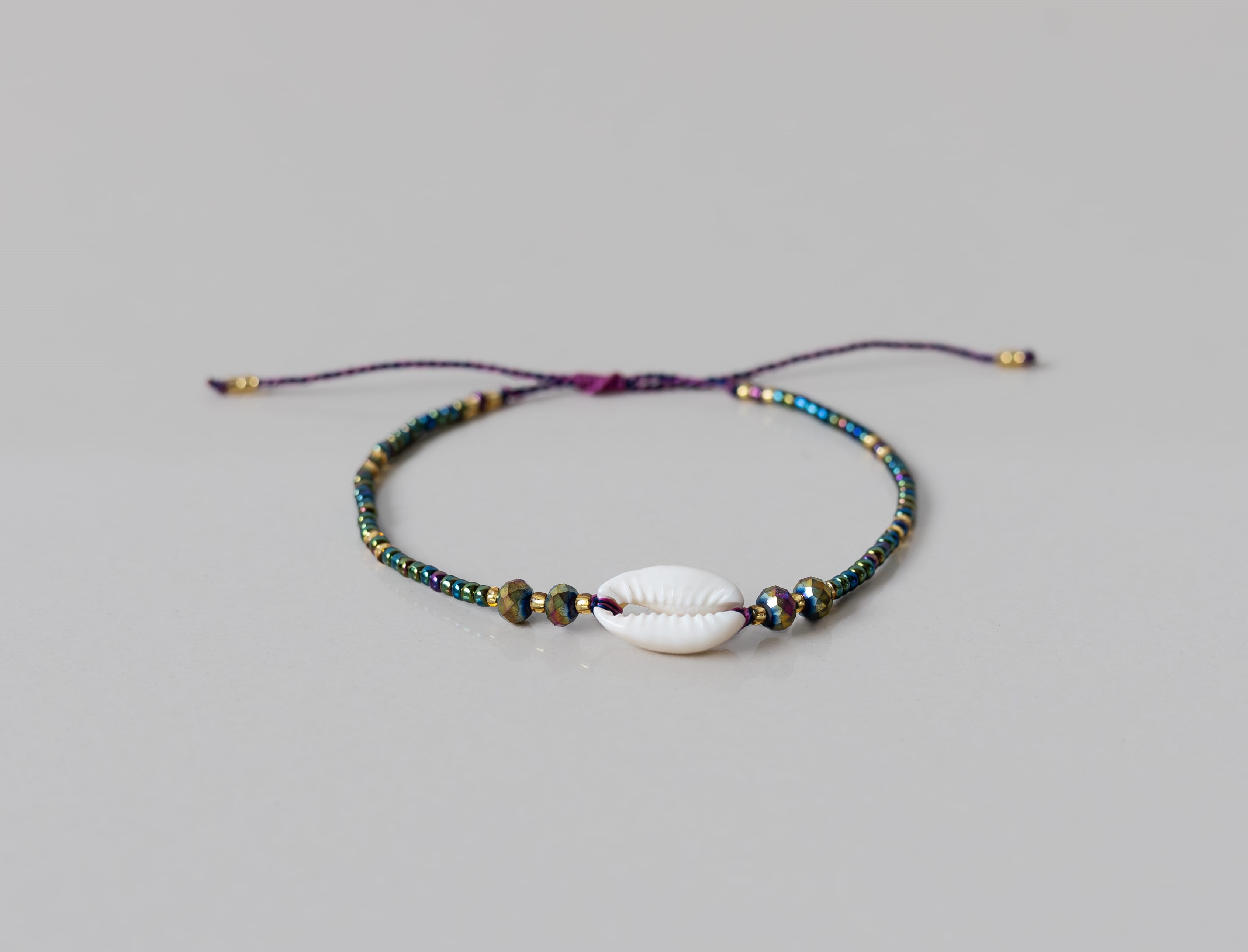 Minimalistický korálkový náramek s mušlí