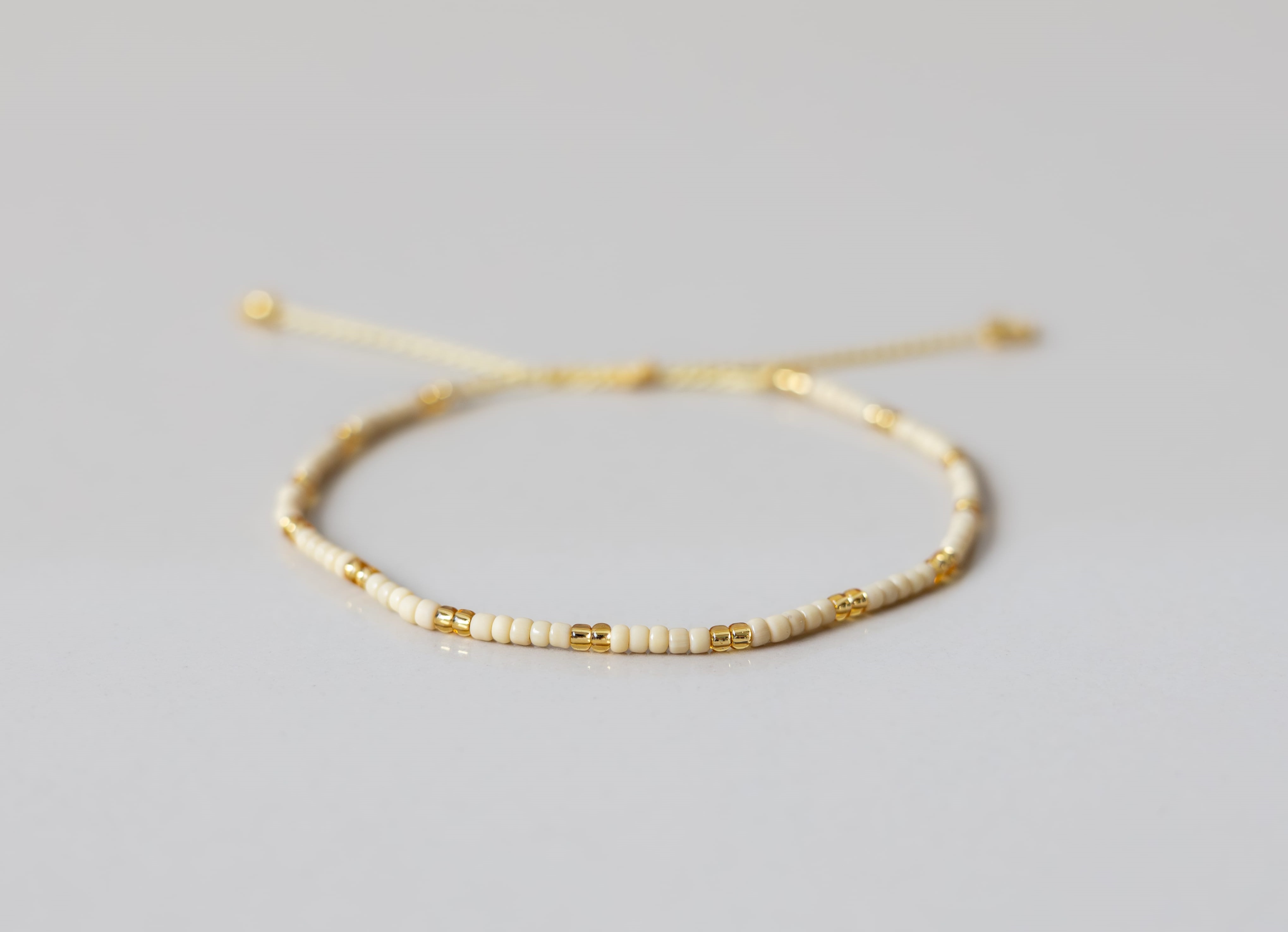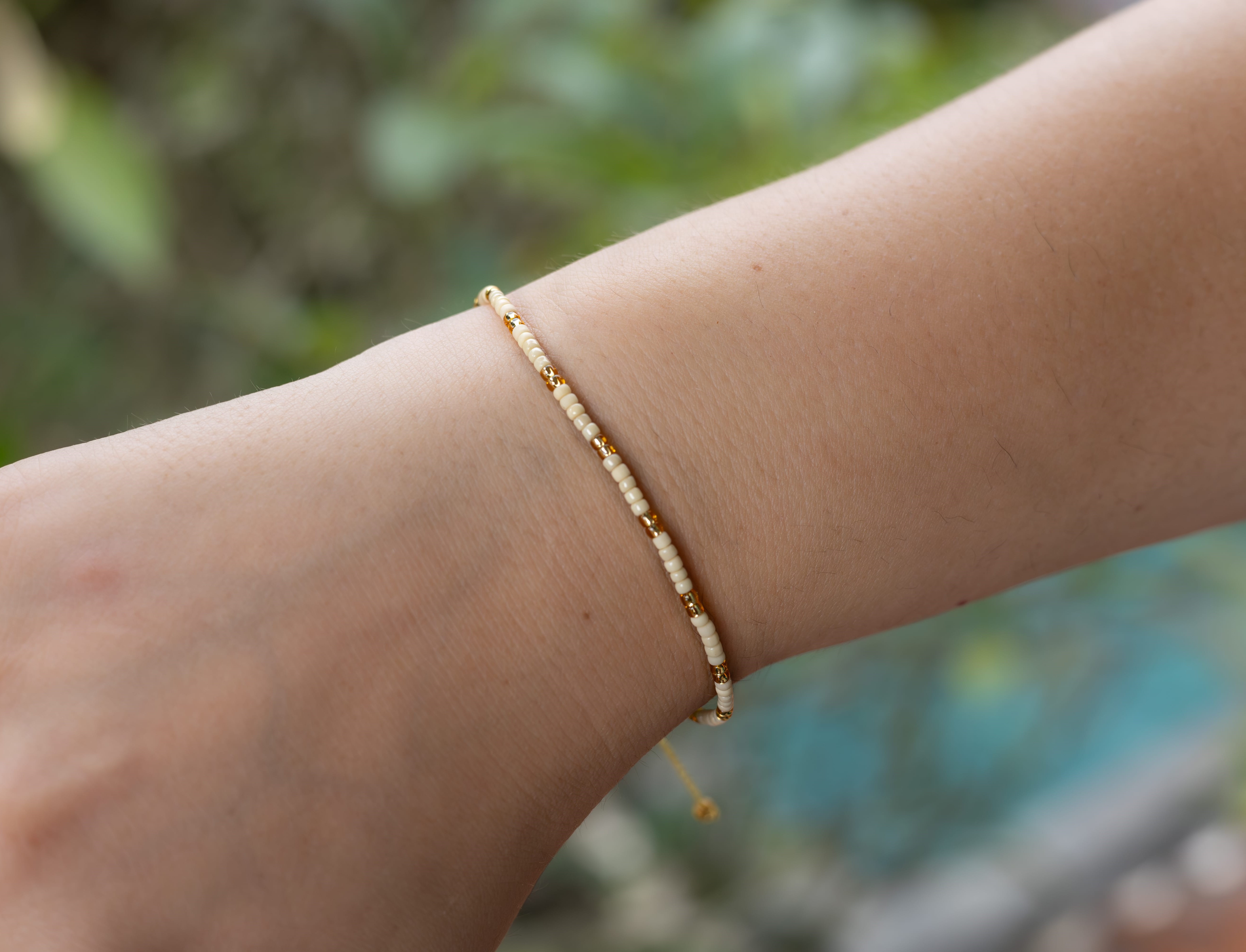 Zaujměte svět svou módní elegancí s naším minimalistickým náramkem, který oslní v jemných odstínech béžové a zlaté.