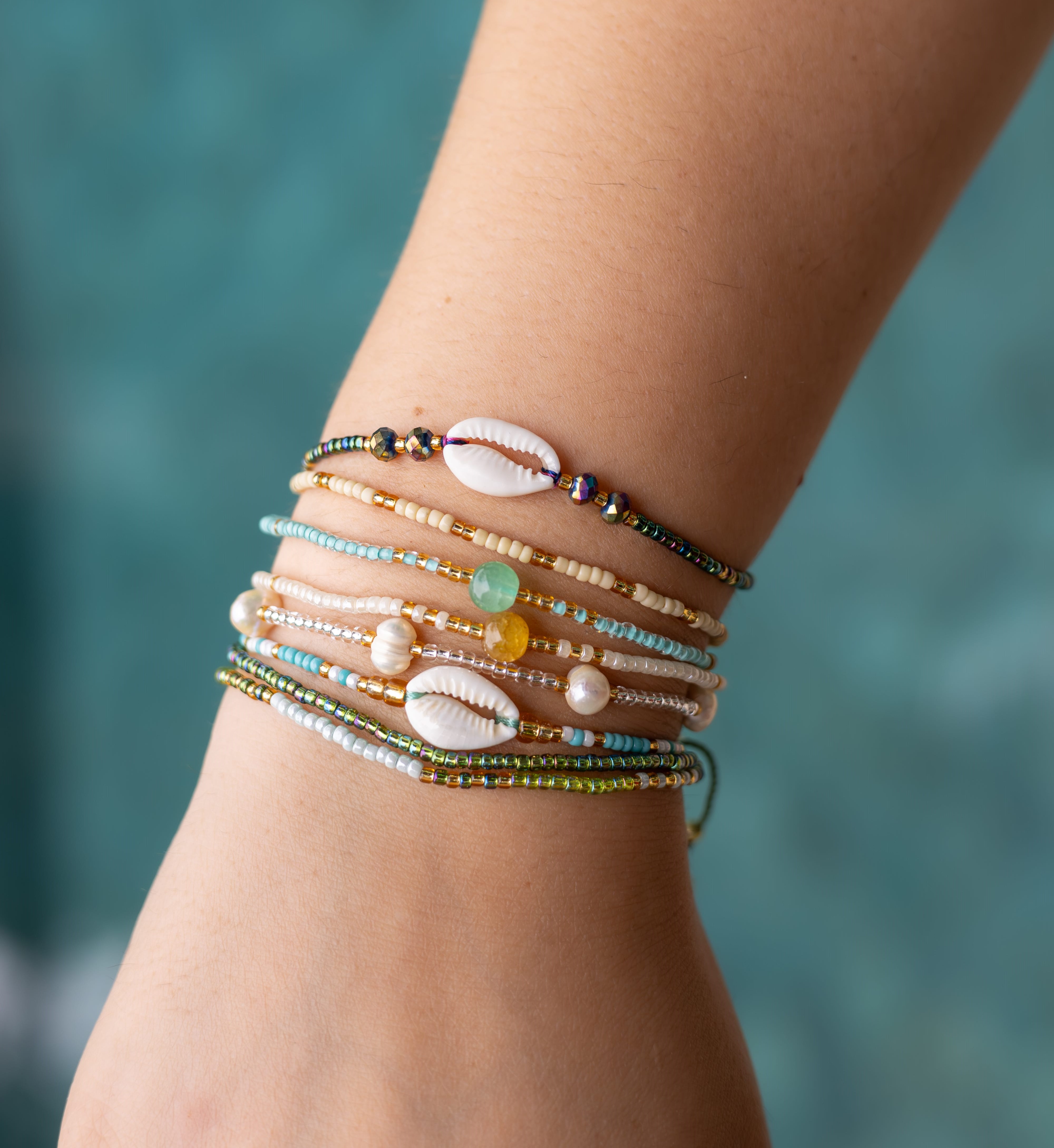 Ručně vyráběný z japonských korálků Miyuki a bílé mušličky, tento náramek nejenže vyzařuje vkus, ale je i skvělým módním trendy doplňkem.