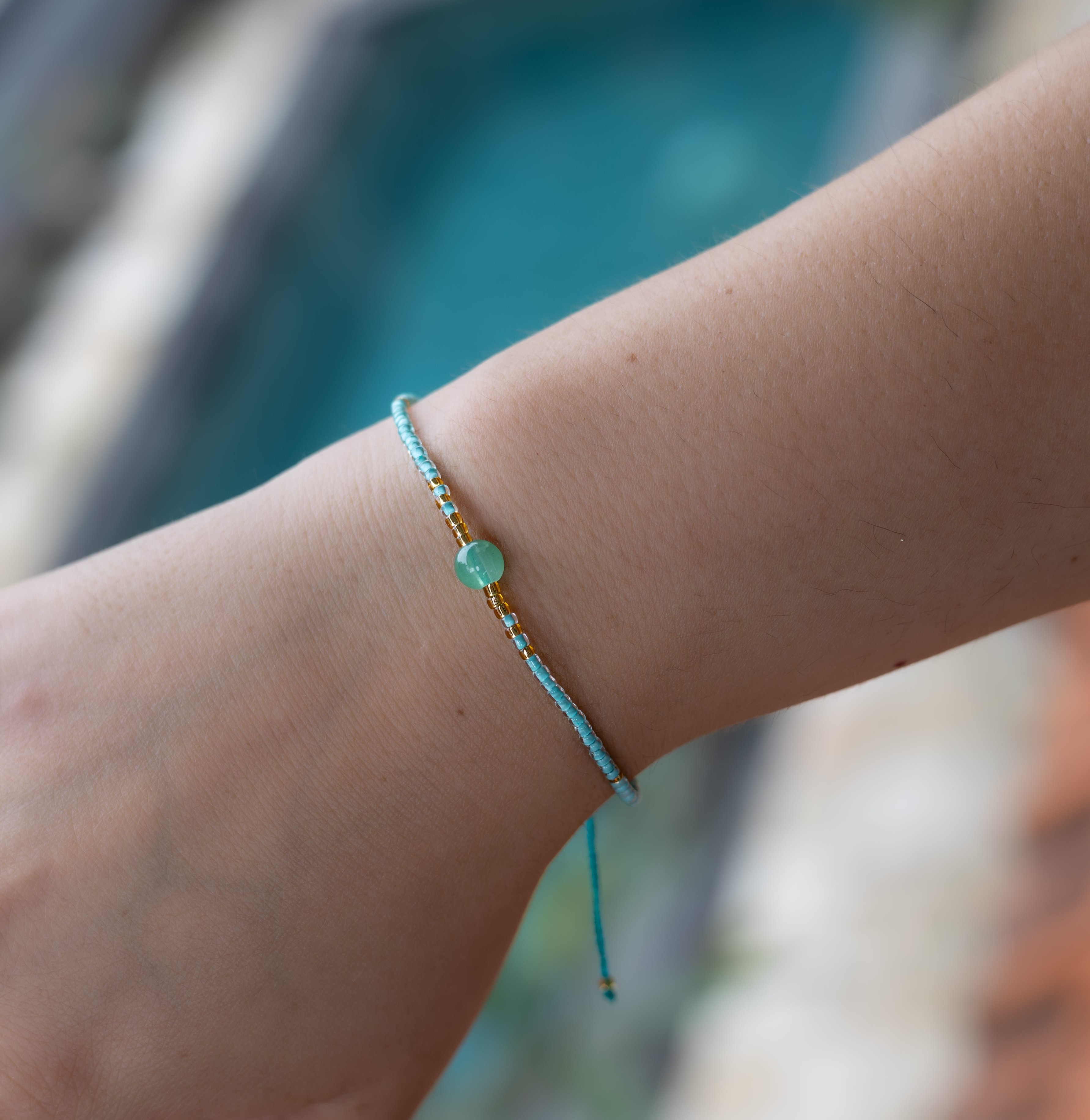 Zaujměte svět svou módní elegancí s naším minimalistickým náramkem, který oslní v jemných odstínech tyrkysové a zlaté.