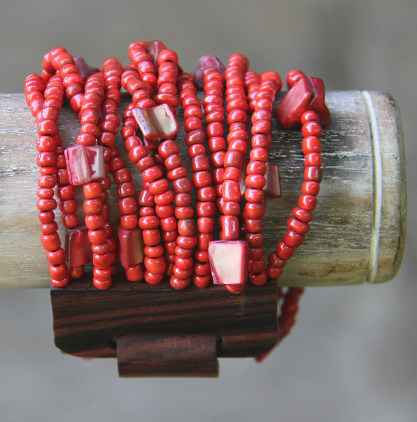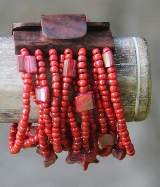 Tento náramek byl vyroben v rodinné dílně paní Nyoman v Indonésii. Paní Nyoman pracovala dlouhá léta jako pouliční prodavačka. Před 7 lety si pronajala svůj první kamenný obchod a dnes je úspěšnou podnikatelkou. Výrobou bižuterie zaměstnává 10 žen ze své vesnice.